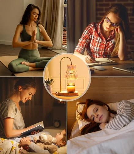 This candle warmer lamp is a game-changer! The adjustable height and dimmable feature let me customize the scent intensity, while the timer ensures safety. It melts wax evenly, filling my room with fragrance without an open flame. The amber lampshade adds cozy ambiance, and the included bulbs work perfectly. Fast shipping and great seller—highly recommend!
