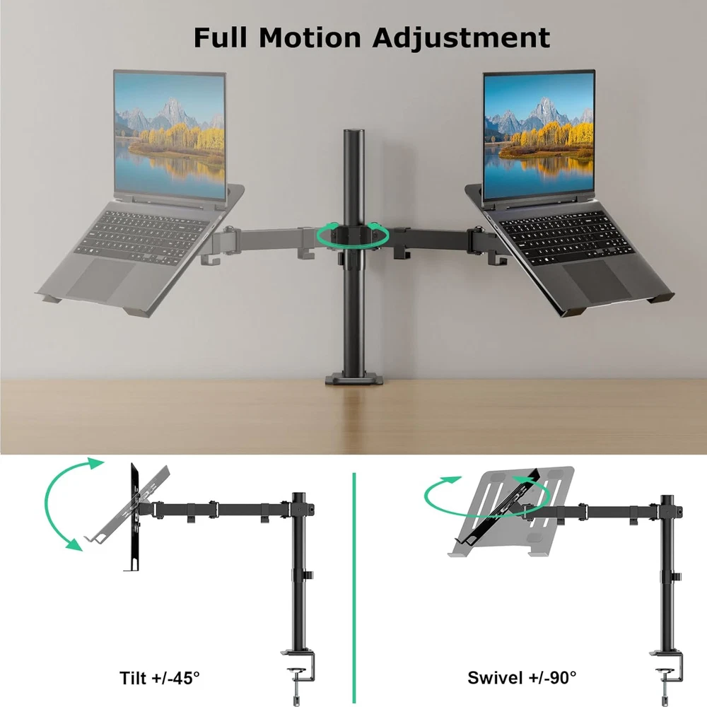 Adjustable Laptop Desk Mount for 17" Laptops, Full Motion Clamp/Grommet Mount