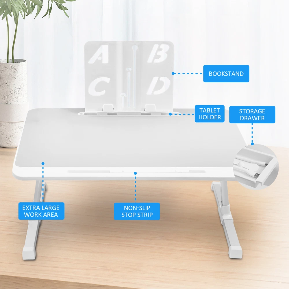 Store category Sign Up Now ! You may also like Product Description Increased Efficiency: Measuring 23.6x15.7 inches, our Lap Desk for Bed provides ample room for a mouse and a 17-inch or larger laptop. Optimize your work and work with idealer convenience, thanks to the large size of our desk. Versatile Use: Enjoy the convenience of using it as a versatile laptop stand for productive work trainings in bed, a cozy makeshift table top for sofa snacking and even as a mobile business desk for your work needs. Adjustable Comfort: Enjoy the perfect angle for any task with our Lap Desk for Bed. Effortlessly adjust to 5-gear heights, then lock in the desired slope for tailored comfort during extended use. Convenient and Portable: Our Lap Desk for Bed features foldable legs that can be easily tucked under the table for compact storage. Use it anytime and anywhere without taking up much space, making it perfect for small apartments or dorm rooms. Quality Construction: Crafted with high-quality materials, this lap desk promises a long service life, ensuring sturdy and durable work that stays safe and odorless, without the worry of deformation or damage. Upgrade your work-from-home setup with our large-sized Bed Computer Desk. It's perfect for those who want a standing desk for business or at-home use. Designed to meet different needs, it can be used anytime and anywhere. Made with high-quality materials, this desk promises durable use. Make WFH work for you! Specification: Product name: Foldable Laptop Table for Bed Product size: see picture Packing List: 1* Bed Computer Desk 1* Bookshelf Note: Due to different lighting and screen settings, the item color may be slightly different from the picture. Due to different manual measurements, please allow a 1-2cm difference in size. Payment Delivery details Terms of sales About us Feedback & DSRs Payment Before you palce an order, please kindly make sure that you have a paypal account. We accept PAYPAL payment only. Payment should be completed within 2 days after auction closed, or unpaid dispute will be filed for an closing auction. An unpaid case will be filled after 4 days. Delivery details We ship to your eBay address. Each package will be shipped to US by UPS Regular Parcel with tracking number. Please check your shipping address carefully before checkout, it can't be changed if order completed. All items will be shipped within 1-2 business day upon receipt of payment.Orders placed on weekend will be shipped within 3 days. If you do not receive your item in 7-10 business days.please contact us immediately for further assistance. We will be responsible for any damages or losses incurred in the shipping process. About us We maintain high standards of excellence FIVE STAR and strive for 100% customer satisfaction! Positive Feedback is very important to us. We hope that you contact us immediately Before you give us neutral or negative feedback, so that we can satisfactorily address your concerns. We promise to offer the lowest price and high quality produce. Our working time: From Monday to Friday(9:30 am to 18:00pm), we don't working on holidays ,hope you can understand and know that , thank you. Please always talk to us via ebay Message. We appreciate your business and look forward to growing our e-Bay sales with satisfied customers. Feedback Contact us If you have any questions, please feel free to contact with us by ebay Message during our business hours ( 9:30a.m. to 5:30 p.m.), or email us through eBay, we will try our best to help you to resolve it. For any presale or after-sale questions,please do feel free to email us! Due to the time difference, each email will be replied within 1 working day,and weekend will be delayed a bit. Feedback