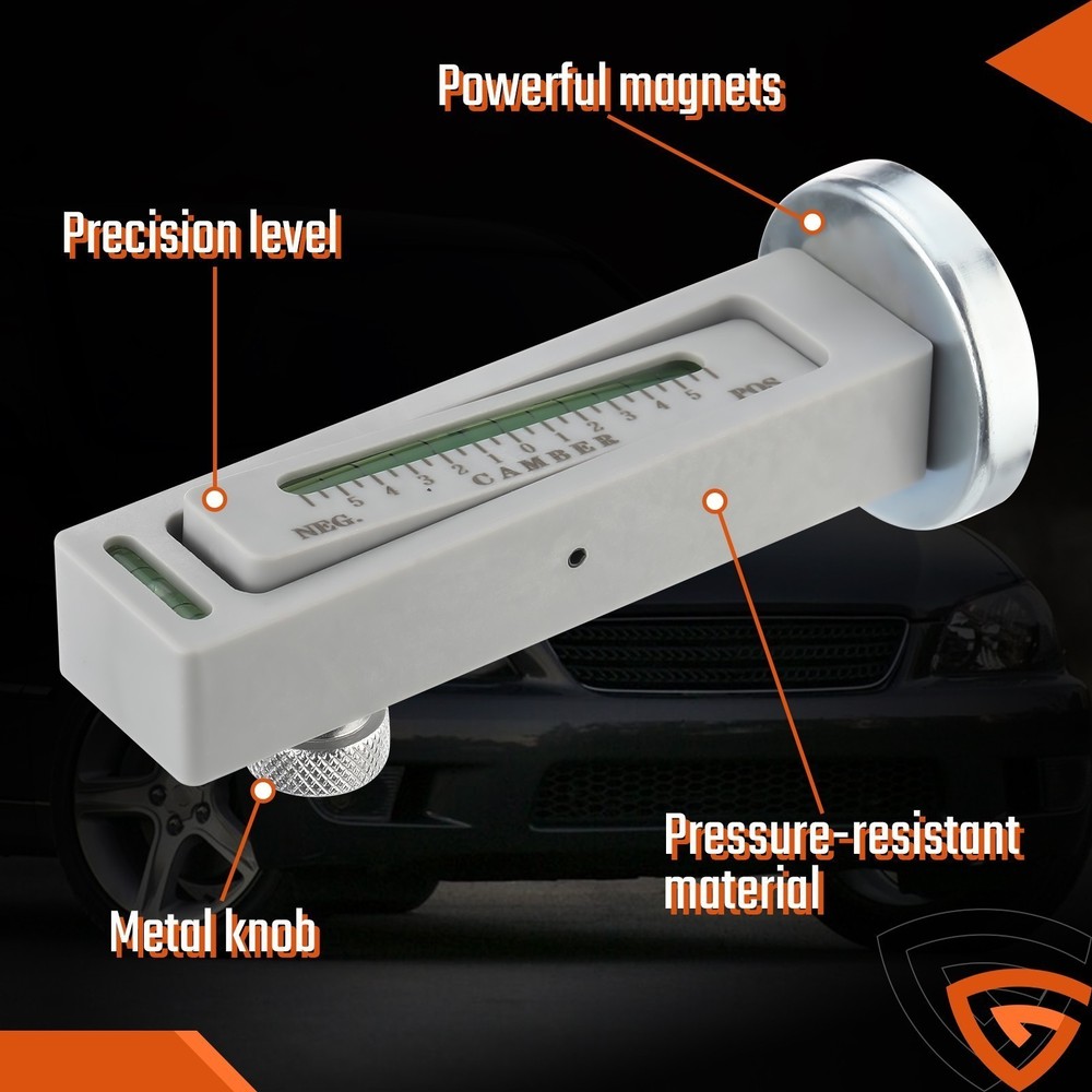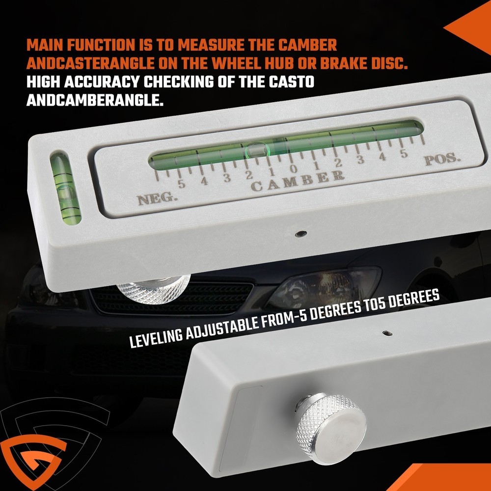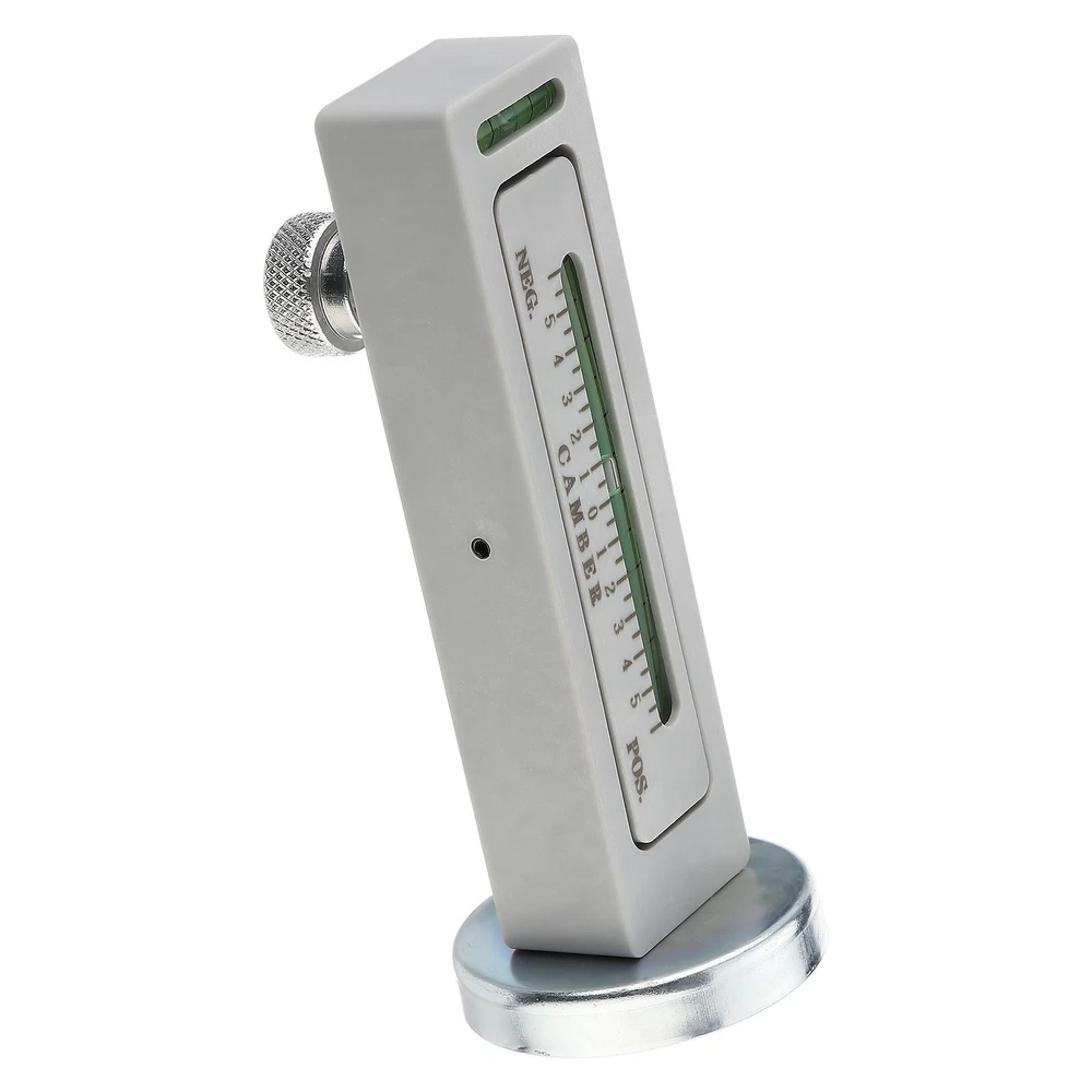 Adjustable Magnetic Gauge Tool Camber Castor Strut Wheel Alignment For Car Truck -100% brand new -Measure the Camber and Caster angle on the wheel hub or brake disc -Suitable for accurate checking of the castor and camber angle -Has a simple leveling adjustment from -5 degrees to 5 degrees -Magnetic gauge attaches to the hub or disc brake -Allows adjustment to maintain correct wheel alignment and even tyre wear -Allows you to return the strut to the camber position after dismantling and re-assembling the suspension or to check the amount of camber change before re-installing -Easy to read and convenient to operate -Time and money saving Package Included: 1x Magnetic Gauge Tool User Manual: -Remove the four-wheel alignment sensor (fixture), remove the tire. -Carefully attaching the magnetic level to the side of the brake wheel disc. -Adjust the level to zero position. -Attaching the required special parts for positioning. -Using the special tool, adjust the positioning parts to the required measuring angle with the help of the magnetic level degree indication. -If a small deviation is found when re-testing with the locator, just fine tune it at the bottom of the car. (Generally a small deviation will not cause positioning failure)