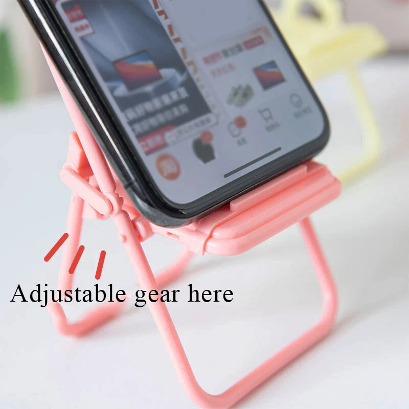 Description: 100% Brand New and high quality. Folding chair phone holder,foldable and foldable,does not take up space.The bottom is firm and the texture is delicate.Suitable for placing mobile phones,tablet computers,desktop decorations,etc. Features: Material:plastic Color:green,pink,purple,yellow Size:11*6*6.5cm (1 inch = 25.4mm or 1mm = 0.0393 inch) Package Includes: 1PC Mobile Phone Bracket Notice: 1. Please allow 2-3% error due to manual measurement. Please make sure you do not mind before you bid. 2. The colors may have different as the difference display,please understand.