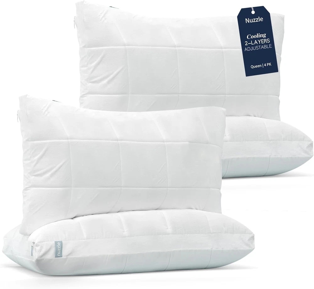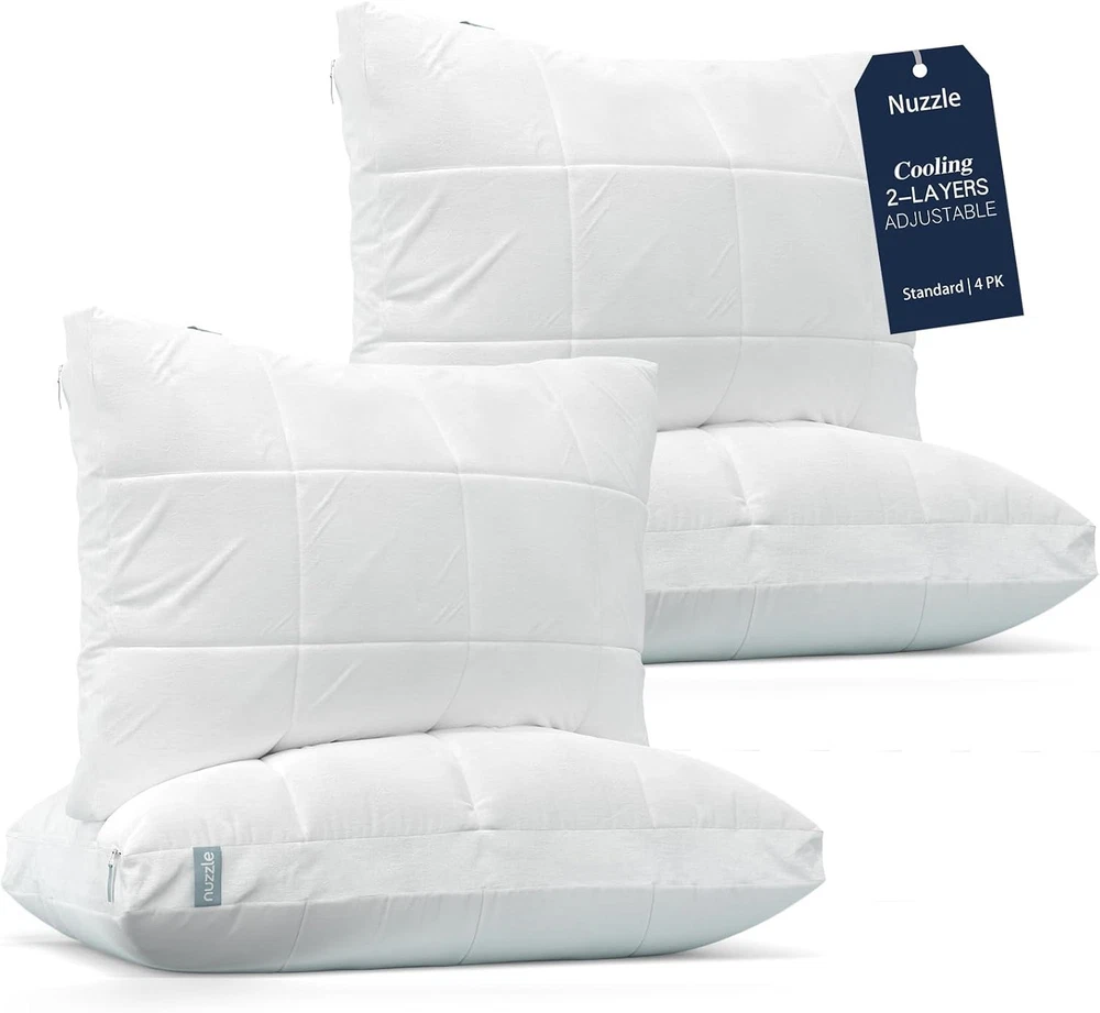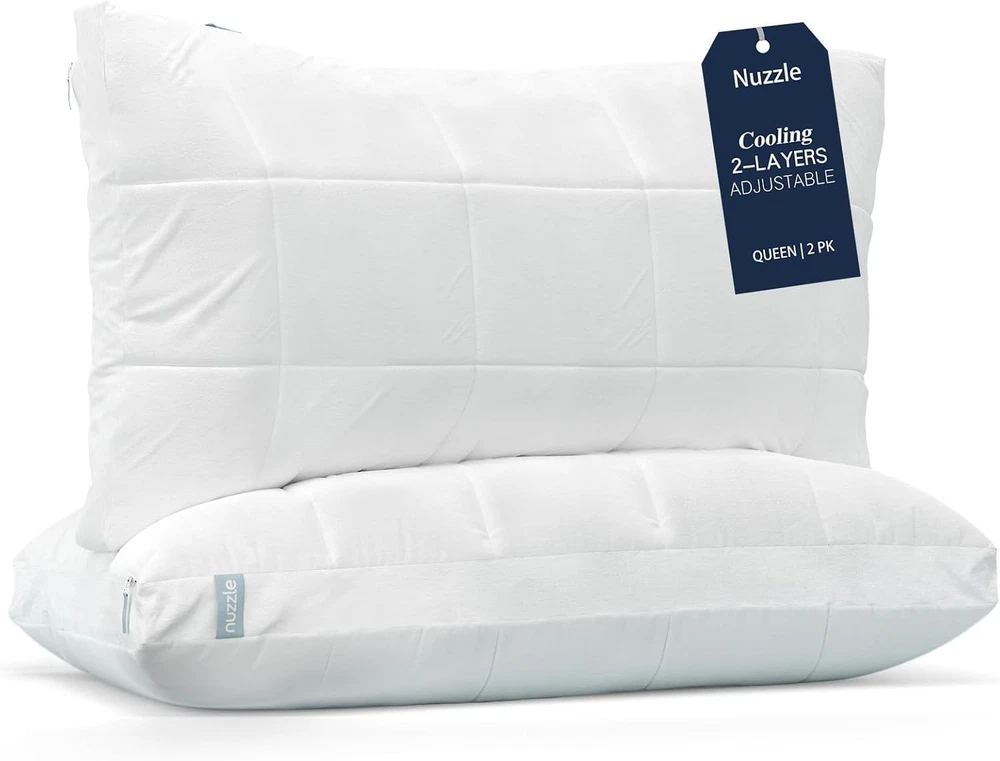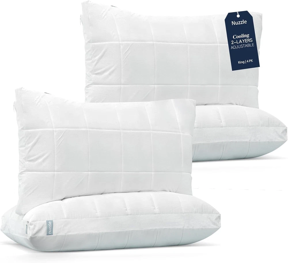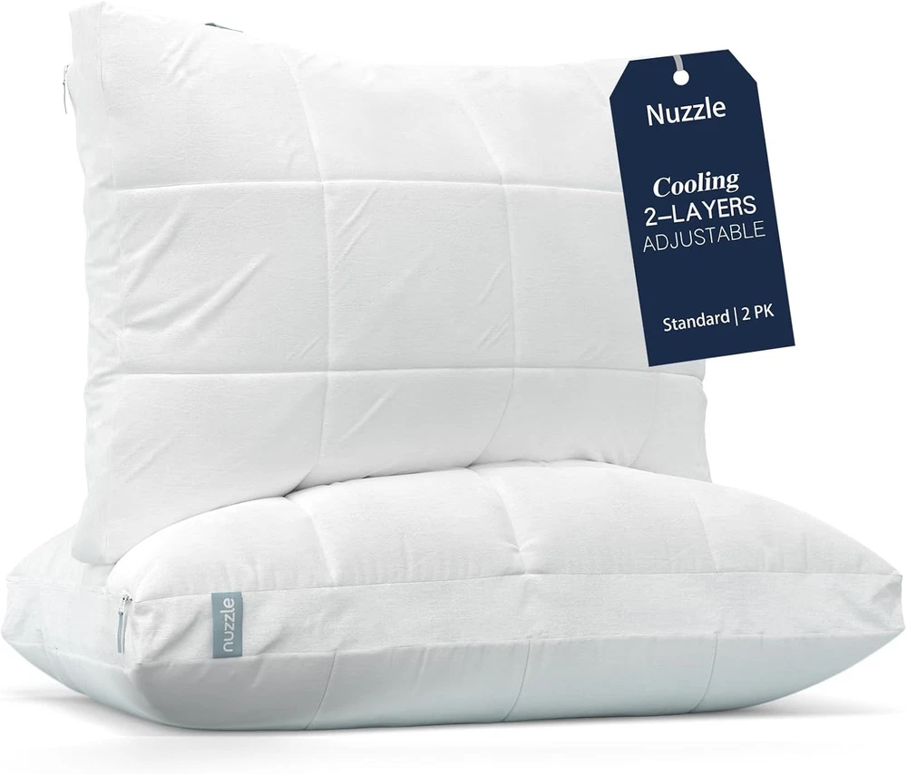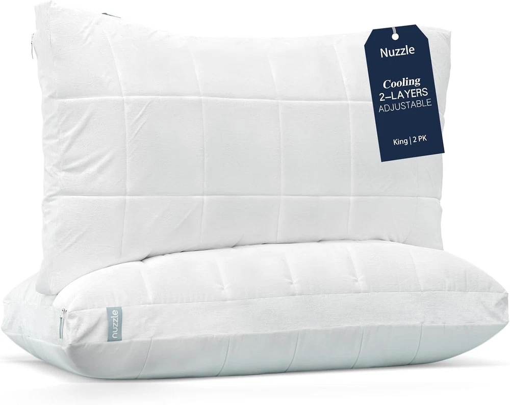 Product description Previous page Next page MORE PILLOWS FROM Nuzzle Cooling Adjustable Pillow Add to Cart Cooling Pillows Add to Cart Cooling Adjustable Pillow Add to Cart Cooling Pillows Add to Cart Nuzzle Pillow Cases Buying Options Customer Reviews 4.4 out of 5 stars 3,468 4.4 out of 5 stars 3,468 4.4 out of 5 stars 3,468 4.4 out of 5 stars 3,468 4.6 out of 5 stars 49 Price $41.64 $ 41 . 64 $71.39 $ 71 . 39 $50.14 $ 50 . 14 $80.74 $ 80 . 74 $25.48 $ 25 . 48 size Standard (Pack of 1) Standard (Pack of 2) King (Pack of 1) King (Pack of 2) Standard (Pack of 2) number of pieces 1 2 1 2 2 Suitable for Seasons All Season All Season All Season All Season All Season Fill Material Polyester Polyester Polyester Polyester 100% Cotton Color White White White White White On Dec 23, 2025 at 01:43:42 PST, seller added the following information: