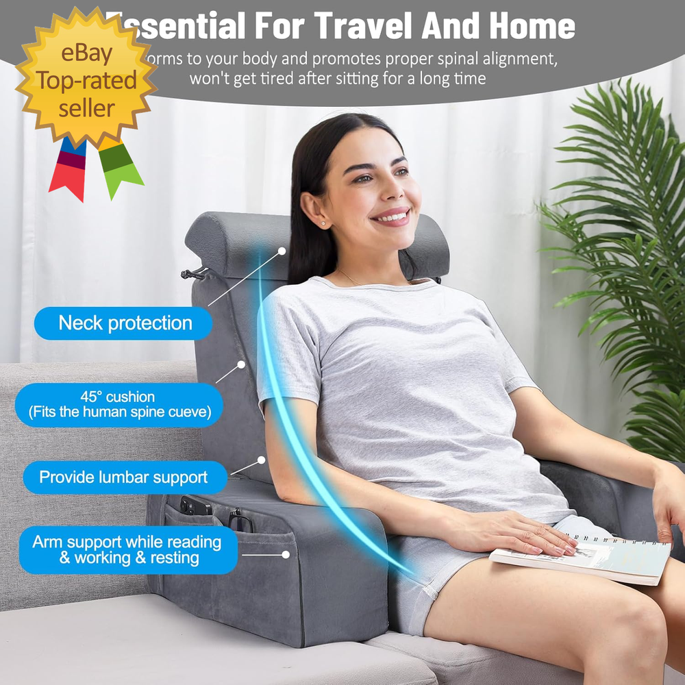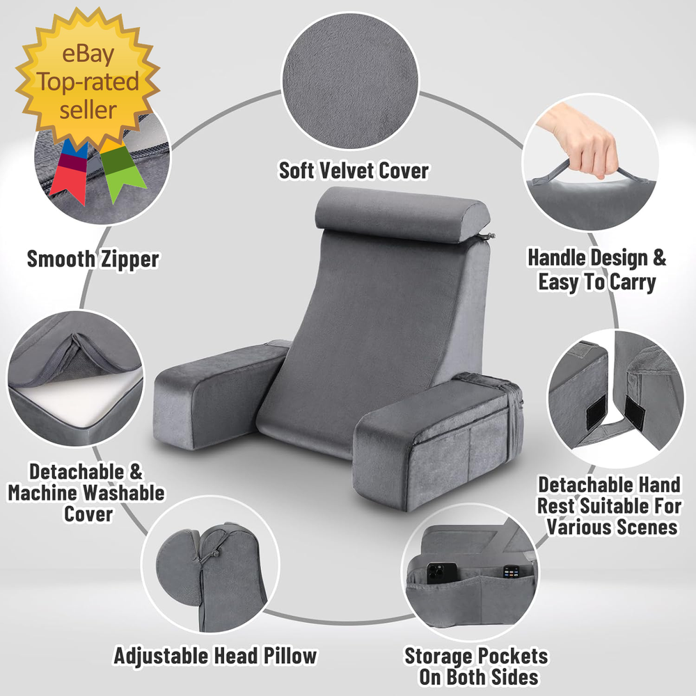 Store New Arrivals Add to Favorite View Feedback Contact Reading Pillow for Sitting in Bed Adult, Back Pillow for Bed Sitting Up, Description Item model number RP-01 Unit Count 1.0 Count Age Range (Description) Adult Color Grey Material Polyester, velvet, Memory Foam Country of Origin China Fabric Type Velvet & Foam Item Weight 4.16 pounds Use for Back Model Name Reading Pillow Recommended Uses For Product Reading Fill Material Foam Special Feature Portable, Adjustable, Breathable, Removable Cover Package Dimensions 14.61 x 8.82 x 8.27 inches Product Care Instructions Machine Wash Perfect for extended use: Our reading pillow is made of complete high density foam core, unlike shredded foam that deforms and sags. Our solid foam provides strong, long-lasting support and without sacrificing comfort. More supportive than usual reading pillows. Make it suitable for long periods of reading or watching TV. Innovative 45-Degree Backrest Design: We have innovatively designed a backrest at a 45 degree Angle that seamlessly fits the natural curves of your head, neck, shoulders, back and lumbar spine. This relieves muscle tension and soreness and allows you to enjoy enough relaxation while reading or watching TV. Multifunctional uses: The reading pillow comes with two armrest pillows and an extra headrest that effortlessly to suit your various posture needs. The detachable design allows you to use the armrests as leg pillows or the headrest as a lumbar cushion, adapting to your comfort needs. Convenient Storage and Portability: The armrest pillow comes with 2 oversized side pockets for easy storage of your essentials such as books, remote controls, phones and glasses. And the reading pillow weighs only 5 pounds, and has a handle design above it, which can be easily moved anywhere. Easy to Clean: The soft velvet cover is not only comfortable, but also removable and machine washable. It can save you time and effort without the trouble of washing bulky. Innovative 45-Degree Backrest Design: We have innovatively designed a backrest at a 45 degree Angle that seamlessly fits the natural curves of your head, neck, shoulders, back and lumbar spine. This relieves muscle tension and soreness and allows you to enjoy enough relaxation while reading or watching TV. ABOUT US We offer the best prices around on high quality products. Our E-store includes media such as books, movies, music and games while offering electronics, toys, sporting apparel, clothing, tools, general home, garden items and more. SHIPPING We are always working hard to ensure your package arrives as soon as possible. Please understand that some factors like weather, high postal traffic, and the performance of shipping companies are outside of our control. We offer free shipping to the lower 48 states and ship within 2 business days of payment, usually sooner. We do not accept P.O. Boxes. Please provide a physical address. For shipping outside of the continental USA, we only use eBay's Global Shipping Program. The item is shipped to IL and then sent to the rest of the world. International customers are responsible for all duties and taxes. Continue to 'check out' to calculate costs for shipping the item to your country. Messages regarding eBay's Global Shipping Program MUST be directed at eBay EXCLUSIVELY. RETURNS We do not accept returns under normal circumstances. However, we will gladly consider a return if the item is received broken or if the wrong size is sent to you. In all other cases, returns will not be accepted. CUSTOMER SATISFACTION We try our very best to make sure every customer is completely satisfied. If there's a problem, message us! We're happy to help.