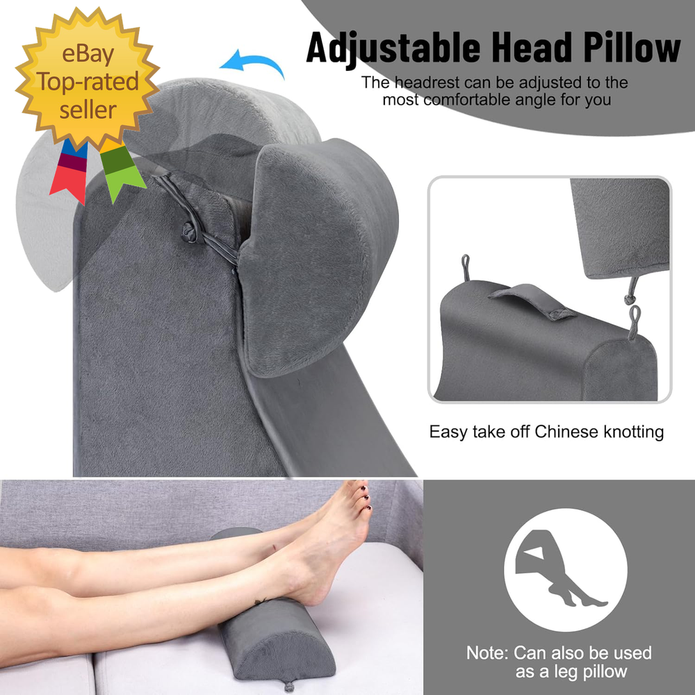 $ 30.1Large Reading Pillow for Bed - Back Support, Memory Foam, Washable Cover, Grey