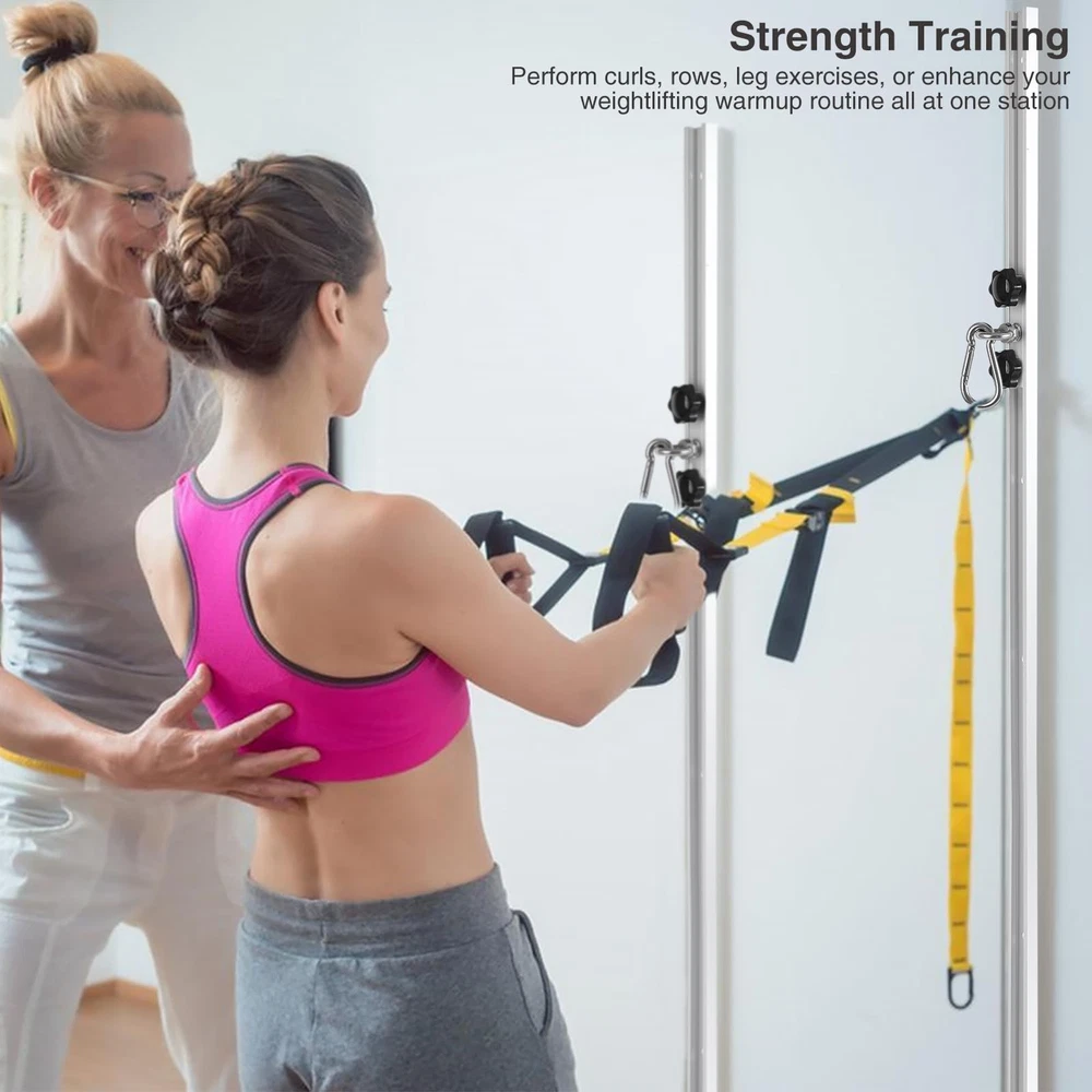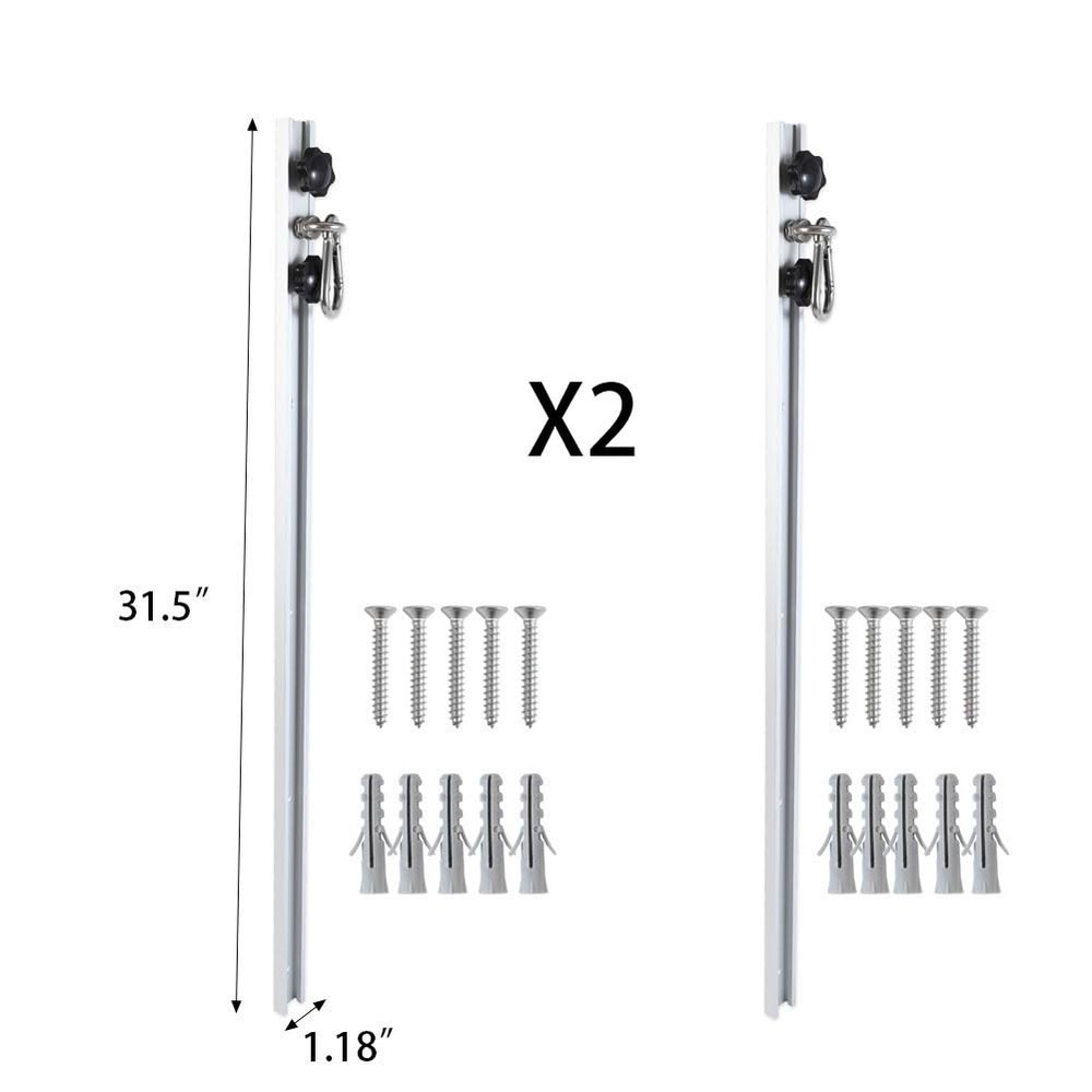 Well-designed; Our adjustable resistance band wall anchors are made of high-quality aluminum, all parts are made of 304 stainless steel to ensure a long service life, and its adjustable design allows you to customize the anchor points to suit your preferred resistance band workouts, providing a safe and stable anchor point,adjustable slide rails,This adjustable resistance band wall anchor is designed for resistance band workouts, Whether you're looking to build muscle, build strength, or improve flexibility, this anchor will be your perfect workout companion that offers endless possibilities for a variety of exercises like chest presses, rows, bicep curls, and more,Space-saving,Say goodbye to bulky gym equipment that takes up valuable space at home or gym, resistance band wall anchors provide a compact and efficient solution for your fitness needs, simply install it on any sturdy wall or door, and you can instantly transform any space into your personal workout area, improving safety and stability,Detailing,Safety is paramount when working out with resistance bands, and our adjustable resistance band wall anchors ensure a safe and secure workout experience, and with its sturdy construction, you can work out with confidence without worrying about slipping or getting into an accident,Contains components,2 Rail and 2 Rail Car,They can be installed separately or connected together, according to your workout habits, equipped with mounting screws, if you have any questions or suggestions, please do not hesitate to us, your satisfaction is our top priority