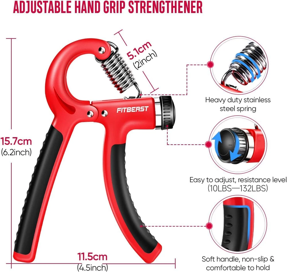 ๐๐ฟ๐ด๐ผ๐ป๐ผ๐บ๐ถ๐ฐ ๐๐ฒ๐๐ถ๐ด๐ป โ Our hand grips feature a contoured shape that fits comfortably in your palms, reducing strain and fatigue during workouts. Strengthening your grip can reduce the risk of injuries during sports or everyday activities that involve handling objects. ๐ฃ๐ผ๐ฟ๐๐ฎ๐ฏ๐น๐ฒ ๐ฎ๐ป๐ฑ ๐ฃ๐ฟ๐ฒ๐บ๐ถ๐๐บ ๐ ๐ฎ๐๐ฒ๐ฟ๐ถ๐ฎ๐น๐ โ Designed for optimal comfort and performance, the FitBeast features a textured handle for a secure grip. The compact design makes it easy to carry these hand grips anywhere, perfect for home or office and convenient for travel or gym use, enabling you to strengthen your grip on the go. Crafted from high-quality, non-slip rubber, these grips offer excellent durability and provide a secure hold for every exercise. ๐๐ฑ๐ท๐๐๐๐ฎ๐ฏ๐น๐ฒ ๐ฅ๐ฒ๐๐ถ๐๐๐ฎ๐ป๐ฐ๐ฒ โ Easily customize the resistance level from beginner to advanced, allowing you to progress at your own pace. The adjustable resistance levels allow you to progress and challenge yourself over time, Ideal for individuals recovering from hand or wrist injuries, our hand grips can aid in rehabilitation and enhance dexterity. ๐ฆ๐๐ถ๐๐ฎ๐ฏ๐น๐ฒ ๐๐ผ๐ฟ ๐๐๐ฒ๐ฟ๐๐ผ๐ป๐ฒ โ Suitable for various activities, including strength training, rehabilitation, sports, and stress relief. Weightlifters, rock climbing, martial arts, tennis, golf, wrestling, and baseball, where grip strength is crucial for performance. In addition to this, musicians, particularly guitarists, pianists, and drummers, office workers and olders can benefit from using hand grippers. ๐ฃ๐ฟ๐ผ๐ณ๐ฒ๐๐๐ถ๐ผ๐ป๐ฎ๐น ๐๐ณ๐๐ฒ๐ฟ-๐๐ฎ๐น๐ฒ๐ ๐ฆ๐ฒ๐ฟ๐๐ถ๐ฐ๐ฒ โ FitBeast has been committed to providing customers with better products and services. If you have any questions on the usage of the products, you can access to our after-sale customer service 24/7 and we will offer you any help you need. Product Description