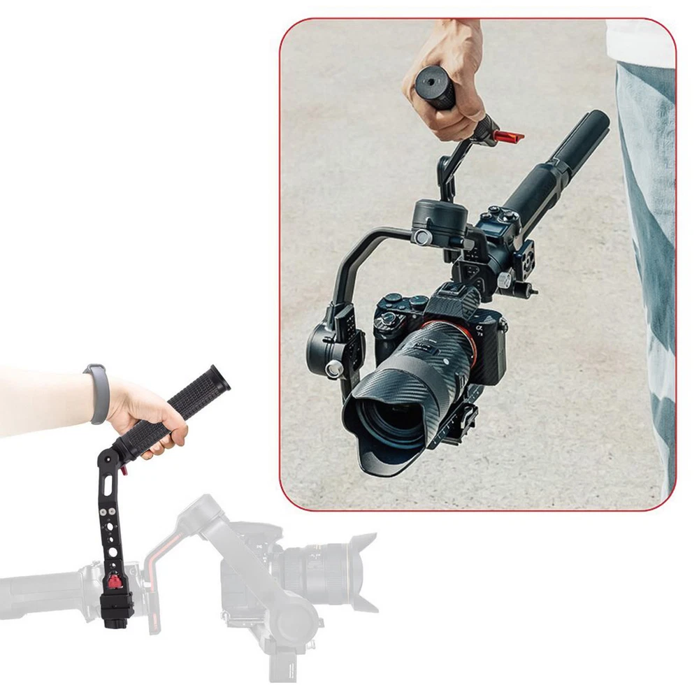 Features: 【Sling Handle for Gimbal Stabilizer】Specially designed for DJI 2/ RSC 2/ 3 / 3 / 3 gimbal stabilizer, this sling handle can greatly reduces the burden of your hand and make it easier to record videos from low angle. 【Quick Installation and Quick Release】The sling handgrip is mounted to gimbal via the clamp, easy to install and quick to release. It is also equipped with a locking knob to lock the clamp tightly and a spring bolt on the clamp to accidental loosening and falling of your gimbal. 【Convenient Accessories Expansion】The gimbal sling handle has two 1/4 inch thread, 3/8 inch thread with locating holes, and cold shoe mount, which enable you to add a wide of accessories, including , video , microphone, etc. 【 and Comfortable】Covered with a rubber pad on the surface, the gimbal sling handgrip offers you a comfortable handheld experience. 【 and Flexible】Made of alloy material, the gimbal sling handle is lightweight and . With a rosette joint, the gimbal handgrip is able to 360° rotate, more flexible to use. Specifications: Material: Alloy Item Weight: 265g/ 9.3oz Packing List: 1 * Sling Handle