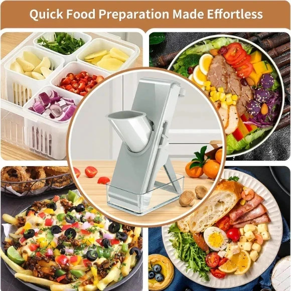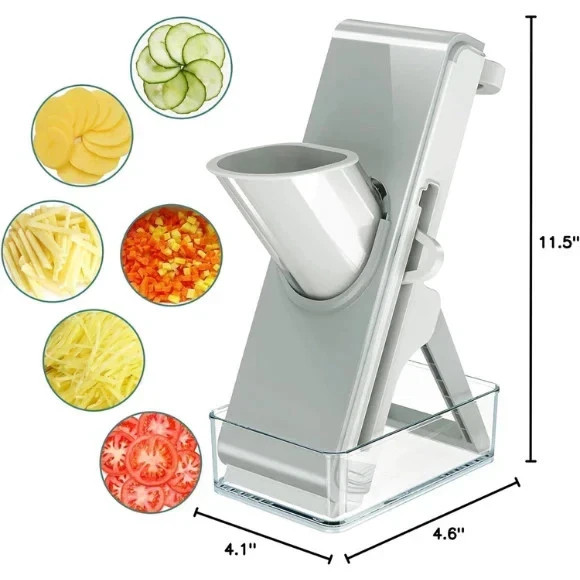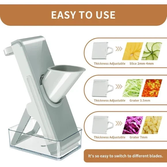 🔒 Safe & Comfortable Design This food slicer features a concealed blade for added safety and a non-slip grip for comfortable use. It makes slicing fruits, vegetables, cheeses, and more both secure and effortless. ⚙️ Adjustable 4-in-1 Vegetable Chopper Slice, chop, or julienne with ease using the multifunctional design. The slicer comes with interchangeable blades and an adjustable cutting platform (2mm to 7mm), letting you prepare ingredients to your desired thickness with minimal effort. 🧼 Easy to Clean Cleanup is quick and simple—detach the handle and place the main blade unit in the top rack of your dishwasher. 💪 Durable & Stylish Made from high-quality, long-lasting materials, this slicer is built for everyday use. Its clean, modern design in solid colors adds a touch of style to your kitchen. 🥔 Built-In Storage Box The bottom container doubles as a food storage box with a lid—perfect for storing unused veggies or fruits and reducing food waste. 📦 What’s Included 2 strip blades, 1 dual-slice blade, 1 body, and 1 food storage box set. If anything is missing, please reach out to us via Amazon. We’re always ready to help.