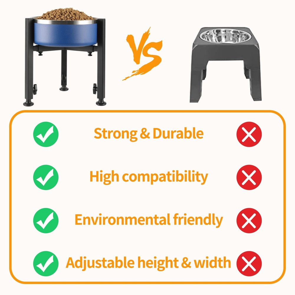 The Single Dog Bowl Stand is a must-have addition to any pet owner's household. This sturdy and stable stand features a triangle design made of durable metal material,ensuring that it stays in place while your furry friend eats and drinks. The stand is designed with 4 adjustable height options,allowing you to customize it to your pet's specific needs, promoting better digestion and reducing strain on the neck and joints. Additionally, the width adjustable design can accommodate different kinds of dog bowls,making it the perfect choice for pets who require food or water. Cleaning the Adjustable Dog Food Bowl Stand is a breeze,with easy-to-clean and disinfect features that ensure a hygienic feeding area for your pet. The removable bowls and stand are both dishwasher-safe,making it a convenient and hassle-free cleaning experience for pet owners. This elevated dog bowl stand is perfect for large dogs,providing a comfortable feeding experience without the need to bend down or strain their neck. The tall dog bowl stand is also ideal for pets with arthritis,promoting a more comfortable feeding posture and reducing joint pain. In conclusion,the Adjustable Dog Bowl holder is a versatile and practical solution for pet owners looking to provide their furry friends with a comfortable and hygienic feeding area. With its sturdy and stable design,adjustable height options, and convenient cleaning features,this elevated dog bowl stand is a must-have for any pet owner looking to promote better digestion and reduce joint pain in their pet. Steady triangle design:The dog food bowl stand is made of durable metal material ensures the stand stays in place while your furry friend eats and drinks. Adjustable Height: With 4 adjustable height options(8.5",11",12.25",14.5"),this elevated dog bowl stand can be customized to fit your dog's specific needs, promoting better digestion and reducing strain on the neck and joints. Width Adjustable Design: The dog bowl stand is designed to accommodate kinds of dog bowls, with a width adjustable feature that allows you to fit any size of food and water bowls for your pet. Easy to Clean:This elevated dog bowl holder is easy to clean and disinfect,making it a hygienic choice for your pet's feeding area.The removable bowls and stand for easy cleaning. Perfect for Large Dogs: This tall dog bowl stand is ideal for large dogs or pets with arthritis, providing a comfortable feeding experience without the need to bend down or strain their neck. Guarantee:If you are not satisfied,send it back in 30 days for refund,free to contact us and reply to you as soon as possible