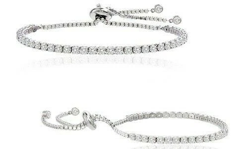 Adjustable Tennis Bracelet Made with Swarovski Elements (Chain length: 5”–10”). Classic design with dangling crystal ends Versatile piece for everyday wear Crystal type: Swarovski Elements Crystal Metal: sterling silver Plating: 18K white, yellow, or rose gold Clasp type: secure slider lock Chain length: 5”–10” Adjustable length Full dimensions: 7.25”x7.25”x0.25” Lead- and nickel-free for sensitive skin types Shipped with USPS First Class Package.