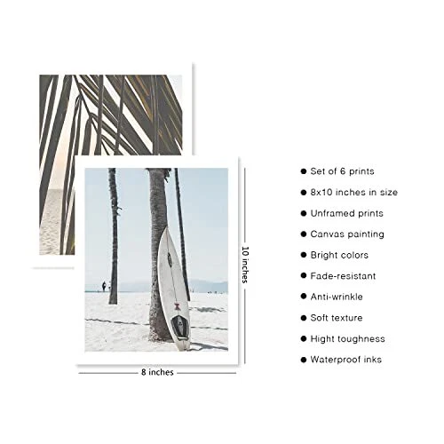 30 Days Return Policy Fast Delivery Trusted seller Admmixoo Beach Wall Art Prints Set of 6 Canvas Art Wall Artwork Landscape Coastal Surf Poster Palm Tree Pictures Photo Paintings on Canvas for Home Decor Room Wall Decor (8"x10" UNFRAMED) Product Description Design Ideas - This is Seaside Travel Scenery Photography Art Wall Decor suitable for sleeping room, living room, bathroom wall decoration. HIGH QUALITY PRINTING - Our beach wall art home decor is printed on canvas, it is a kind of better material for the art prints poster, it is bright colors, soft texture, high toughness, anti-wrinkle, fade-resistant feature and use waterproof inks. It is ideal for home decoration, office decoration, gift. READY to FRAME - Please note that our wall art set come UNFRAMED. These beautiful canvas art wall decor come ready to frame using corresponding size frames found right on or at your local big store, allowing you to easily match the frames to your wall decor. WIDE RANGE of USAGE - You can decorate these wall art prints in your home, they can be applied to wall decorations and photo props, will light up your house, attract lots of attentions, you also can give these prints to your friends, relatives, classmates, teachers or other persons as an exquisite present. TWO SIZES AVAILABLE - Includes Set of 6 UNFRAMED seaside landscape art canvas prints in two sizes. 8"x10" or 11"x14" available. Shipping Returns Payment Shipping Shipping is FREE to all addresses other than APO/PO boxes in the lower 48 states. All our stock ships from US-based warehouses. Shipped via USPS or UPS (depending on location and package weight) Unless stated otherwise, all orders will ship within 24-72 hours of your payment being processed. Check our feedback to see the great reviews of FAST shipping we offer. Returns As our valued customer, we will do our best to make sure the product you receive arrives to you on time and as expected. If you are not satisfied with your purchase, please contact us within 30 days of receiving your order to process a return. Payment We currently accept payment via eBay managed payments only. Once payment is cleared, we will dispatch your shipment within 1-3 business days. Please refer to the "Shipping" tab for more information regarding shipping speed to your destination.