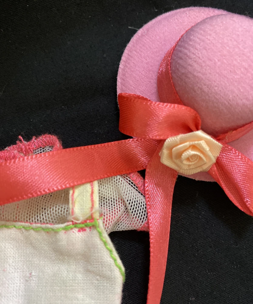 Adorable Barbie Original cream and coral dress fedora shoes