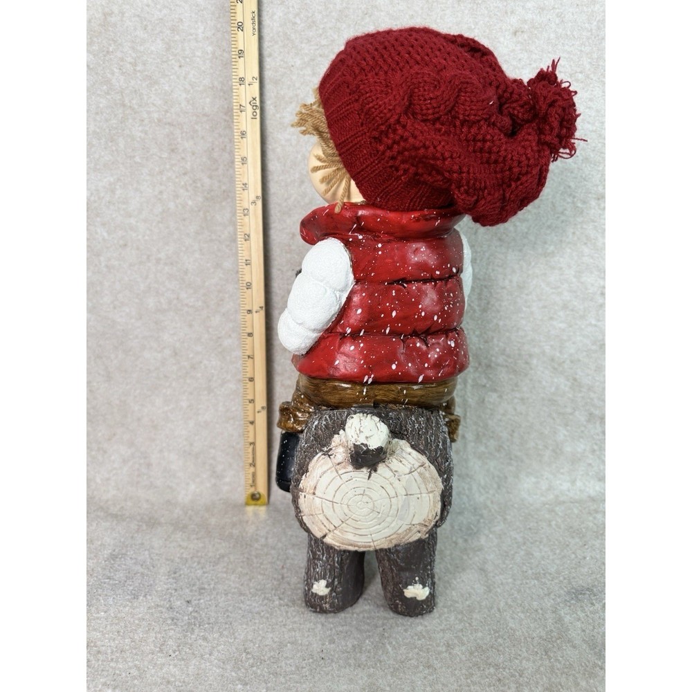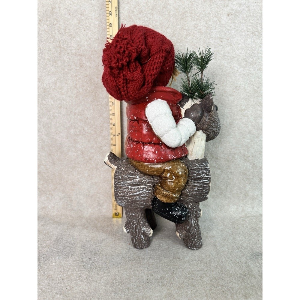 Capture the heartwarming magic of the holidays with this charming Christmas figurine. A joyful child, bundled in a cozy red hat and puffer vest, rides atop a rustic reindeer crafted from wood-like textures. The reindeer's unique log-slice design on its hindquarters and the subtle evergreen sprigs peeking from its head add a touch of natural whimsy. Perfect for adorning your mantelpiece during winter gatherings or as a delightful centerpiece for a festive table. Measurements: • Height: 11 in Type: Figurine Occasion: Christmas Material: Plaster Room: Any Room Item Length: 17.25 in Theme: Seasonal, Animals & Dinosaurs, Fantasy Department: Kids Item Height: 23 in Item Width: 11 in Style: Vintage/Retro Mounting: Free Standing Care Instructions: Clean with Damp Cloth Unit Type: Unit Keywords: Christmas decor, holiday figurine, child figurine, reindeer decoration, rustic christmas, winter decor, table centerpiece, mantel decor, festive ornament, cabin decor, country christmas, seasonal collectible Thank you for your interest-discountduet