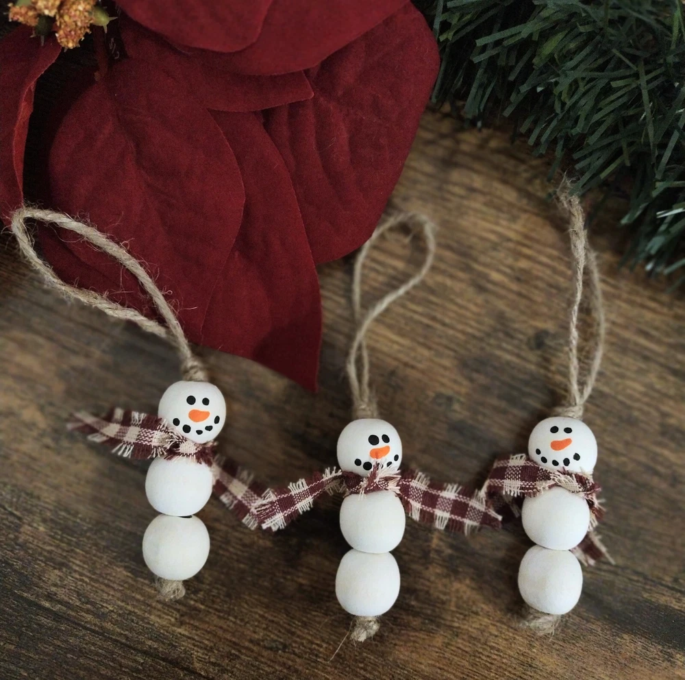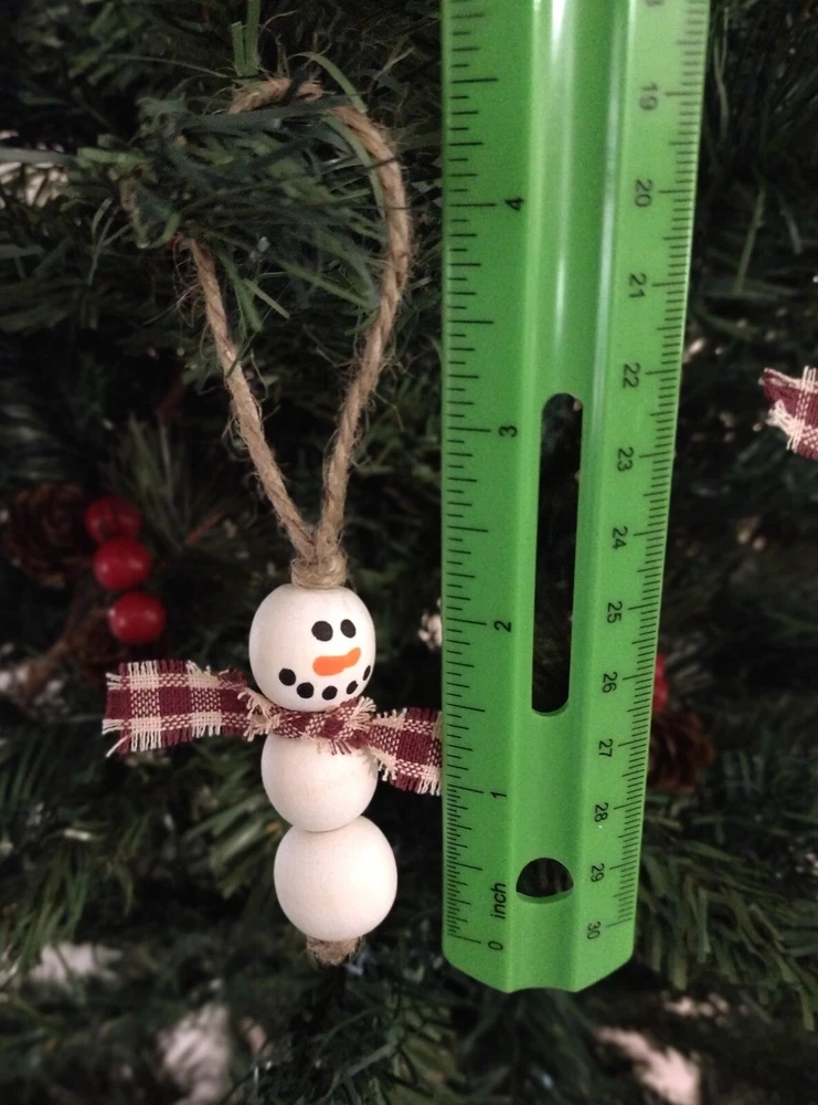 "This listing is for a single ornament. Each ornament measures about 4.5" ( ornament itself is 2" in height), making them a great addition to any Christmas tree or wreath. Simply crafted from natural wood with a cozy little frayed scarf and hand painted face, these are too cute and not to include in your holiday decorating. Shipping will be combined for multiple.