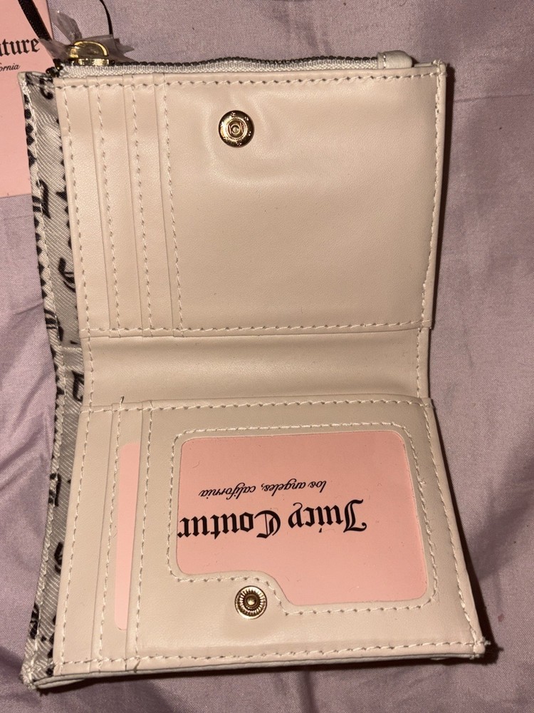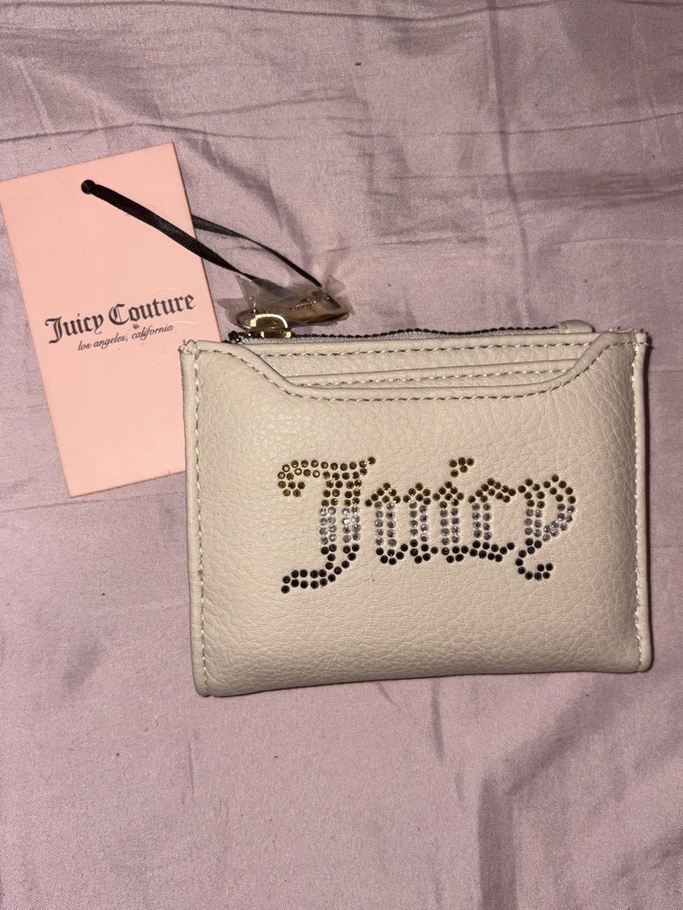 The Adorable Juicy Couture Half Wallet is a stylish and practical accessory for women, perfect for storing cards, cash, and coins. Made from faux leather in a chic beige color, this vintage wallet features a zip and button closure and a blinged out monogram for a touch of luxury. With ample space for organizing your essentials, this wallet is both fashionable and functional for everyday use.
