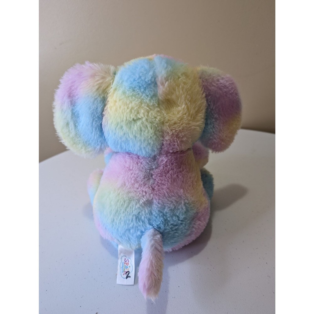 Pastel Rainbow Elephant plush with a rattler in the body and crinkle ears. Super soft material and embroidered eyes. Infant, baby, toddler, nursery, gift, baby shower