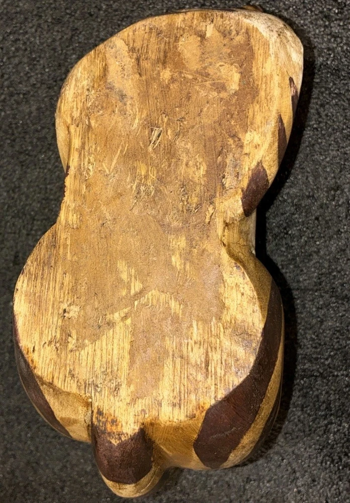 Adorable Tabby Cat Wood Figurine/Statue 5.75H Appropriate Measurements Height: 5.75" Width 10" Length: 4.5" Weight: 1 lb 12oz Item is in good used condition. Please note: the cat's left ear has a small piece of wood chipped off. Please see photos. Otherwise there are no other chips, nicks, scratches, cracks, damage, or repairs.