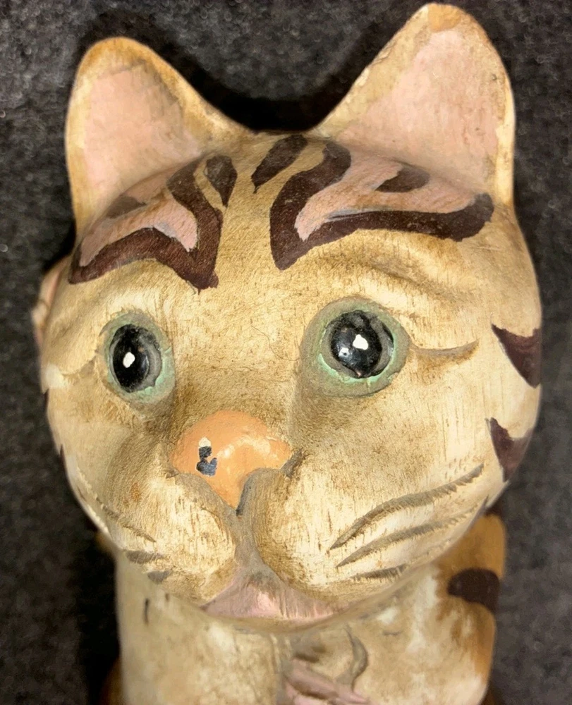 Adorable Striped Tabby Cat Wood Figurine/Statue 5.75H