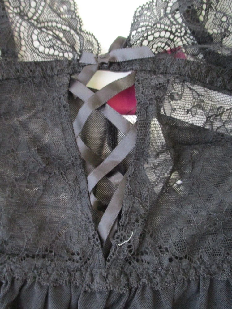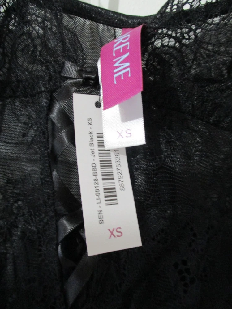 Adore Me Women's Yolandi Babydoll Top + bikini Black XS NWT This is not a returnable item, please see pics for details of babydoll, labels show the material of the pieces, Will be sent on a sealed plastic bag, SAME AS PICTURED.
