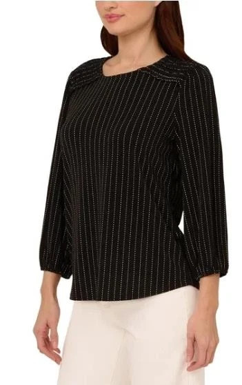 Adrianna Papell Women's 3/4 Sleeve Stretch Smocked Shoulder Blouse Size: Medium Color: Black Content: 95% Polyester / 5% Elastane