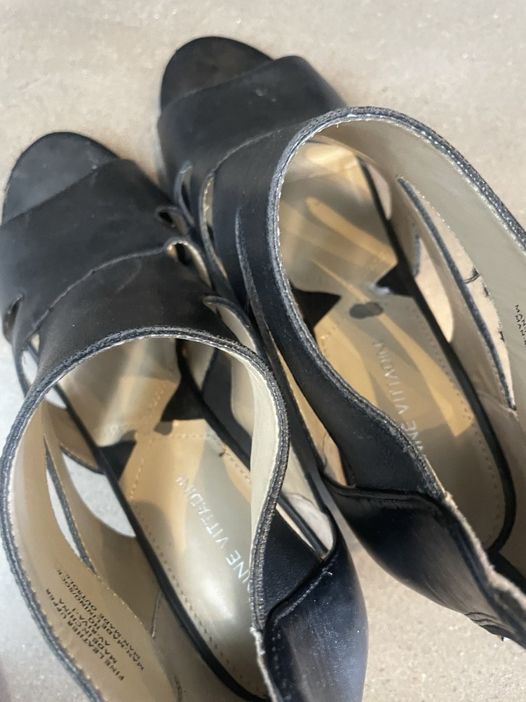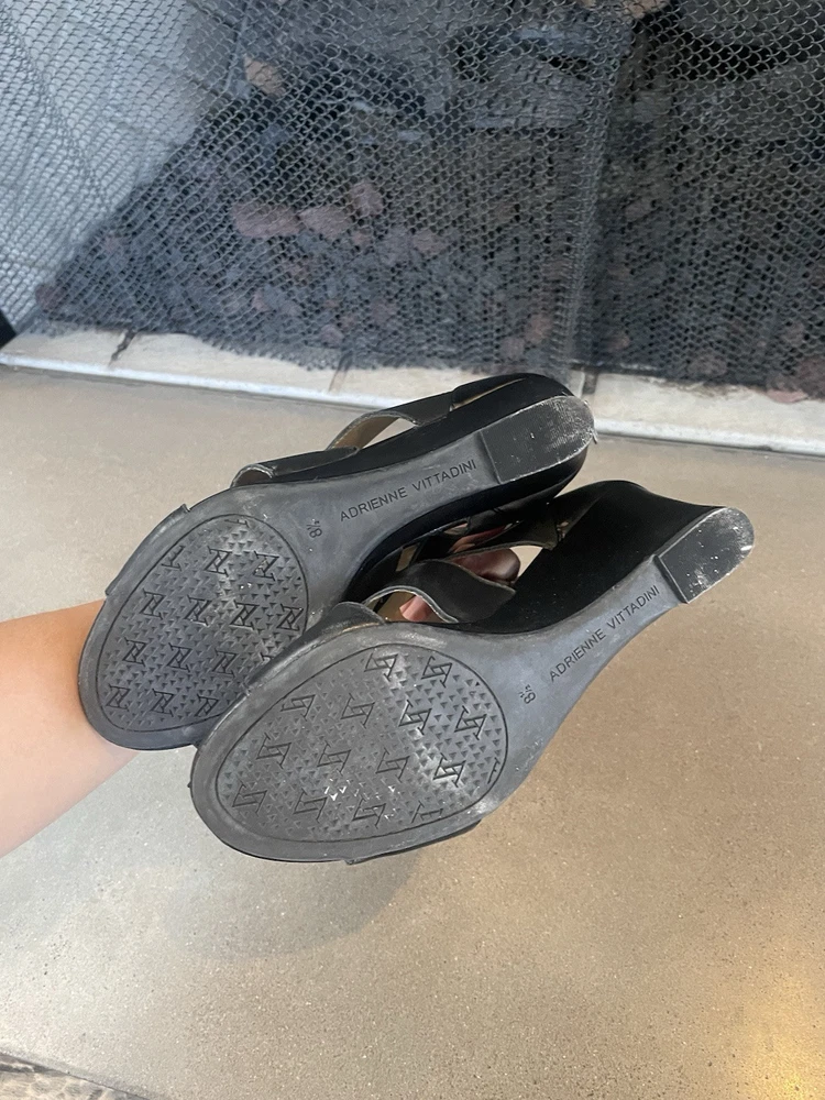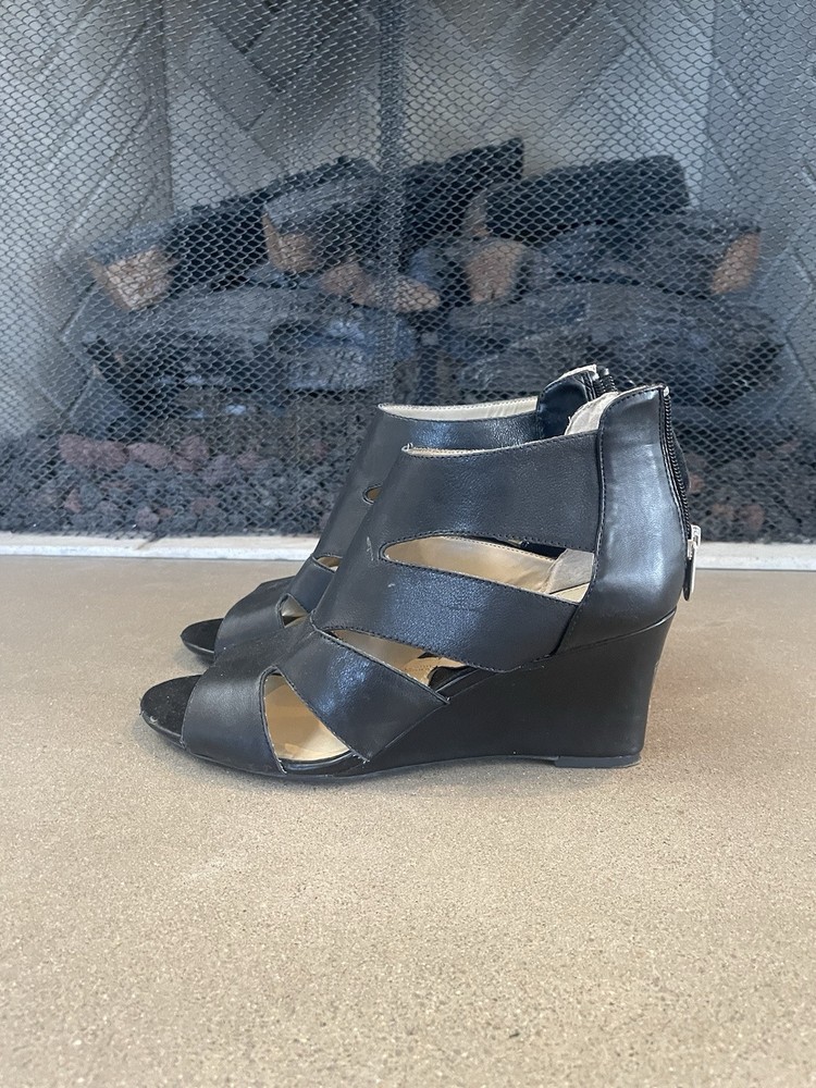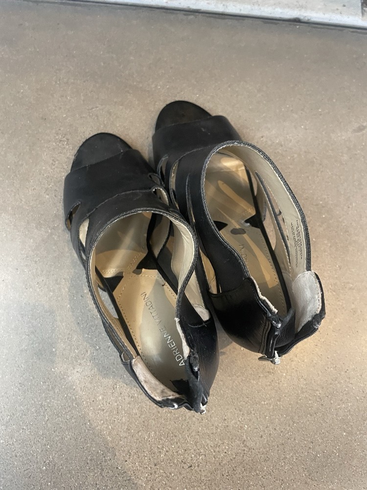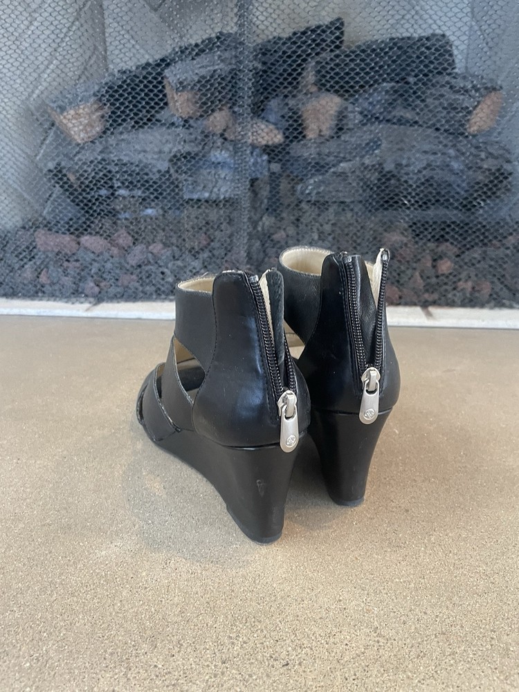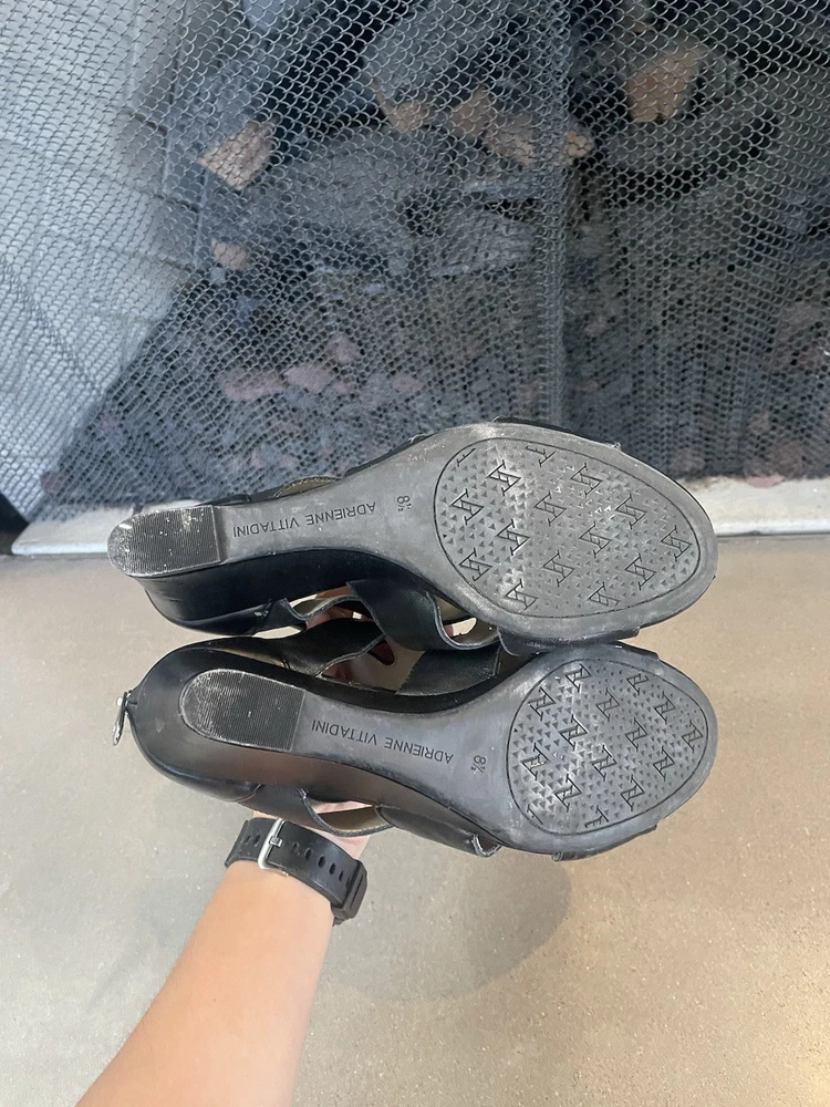 Adrienne Vittadini Black Open Toe Wedge Heel Women’s Size 8.5 Pre-Owned. This item is in hand and all ready to ship out. If you have any questions or would like more photos please don’t hesitate to ask!