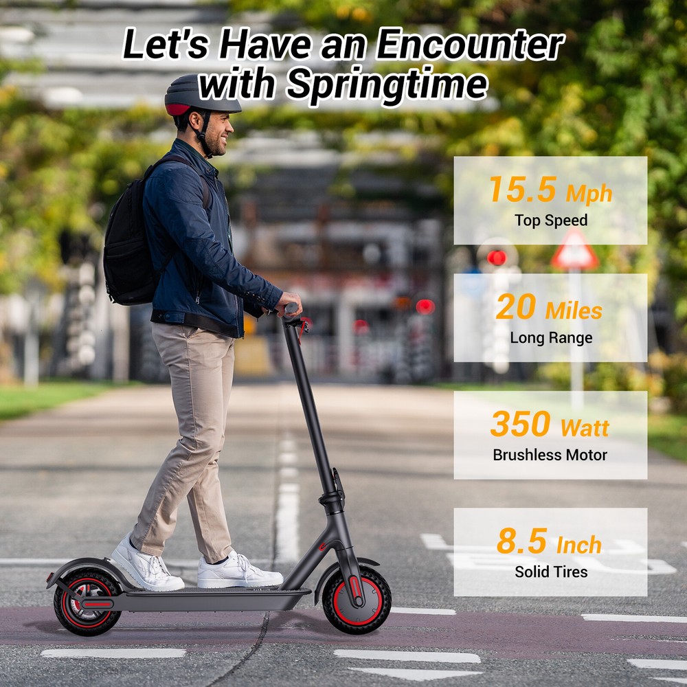 Folding Electric Scooter Adult 350W E-scooter Long Range With APP Electric Moped FEATURES Safe & Sturdy Frame】Our electric scooter adults have passed UL2272_Certified safety certification, and every electric scooter is strictly tested before sale. Our kick scooter for adults frame is made of high quality aluminum alloy, weighing only 28lbs, with a max load capacity of 220lbs, which is both stable and lightweight 【Upgraded Brushless Hub Motor】 Our electric scooter for adults is equipped with a powerful 350W brushless hub motor, the maximum output power can reach 500W, which can provide 20° climbing ability and 15.5Mph speed, the motor runs quietly and consumes low power. Our foldable e scooter for adults has a built-in 36V 8Ah lithium battery that can ride up to 20 miles on a single charge, say goodbye to range anxiety and enjoy a worry-free ride 【Stable and Safe Riding】 The bright headlight of the electric folding scooter allows you to see the road ahead at night, and the conspicuous rear warning light allows oncoming vehicles to notice you, and the disc brakes provide enough braking force for the electric adult scooters to ensure your safe riding.8.5-inch solid tires, no need to inflate, repair or maintenance, no need to worry about breakdowns 【Portable for Commuting】Our adult scooters electric is designed with one-step folding, you can fold it in seconds. Compact size after folding, you can put it in the trunk of the car, subway, elevator and other places, perfect for commuting 【Smart Application】Download the APP and pair the foldable escooter adults with your smartphone. After that, you can use the APP to operate many functions, such as: lock/unlock, turn on/off lights, custom speed and cruise control, etc SPECIFICATION Color: Black Frame Material: Aluminium Tires: Pneumatic tire Max Load: 100kg / 220lbs Max speed: 15.5MPH Mileage: 20Miles Grade Ability: 20 degree slope Mode Type of Motor: Brushless hub motor Battery Type: High quality lithium battery Battery Voltage: 36V Charging time: 3-4 hours Applicable People: Adults and Teen PACKAGE INCLUDED 1x Eletric Scooter 1x Charger 1 x Tool Kit 1x User Manual Payment Shipping Return Feedback Question Payment We accept payment via Paypal ONLY. Immediate payment is required & Shipping will be arranged only your payment is cleared. Shipping Same business day dispatch if paid by 4 pm EST(1 pm PDT). No shipping on weekend or Public Holidays & No responsibility for any customs duty. Return We stand behind our products. Items can be returned for exchange or full refund within 60 days from the date you receive your item. Return shipping is the responsibility of buyer unless the return is a result of our mistake (i.e., your receive the wrong item or damaged item). We will pay for shipping replacement back to you if an exchange is requested. If you want to initiate a return, simply clicks "Return this item" next to the transaction in My eBay, chooses a reason, and prints a return shipping label and packing slip. We’re automatically notified. Feedback Please leave us a FIVE star and POSITIVE feedback if you are satisfied with our product and service. Neutral or negative feedback will not solve problems happily. We believe communication will fix problems and hope every customer can have a good purchasing experience. Question All ebay message will be responded within 1 business day or less, except weekends and holiday!