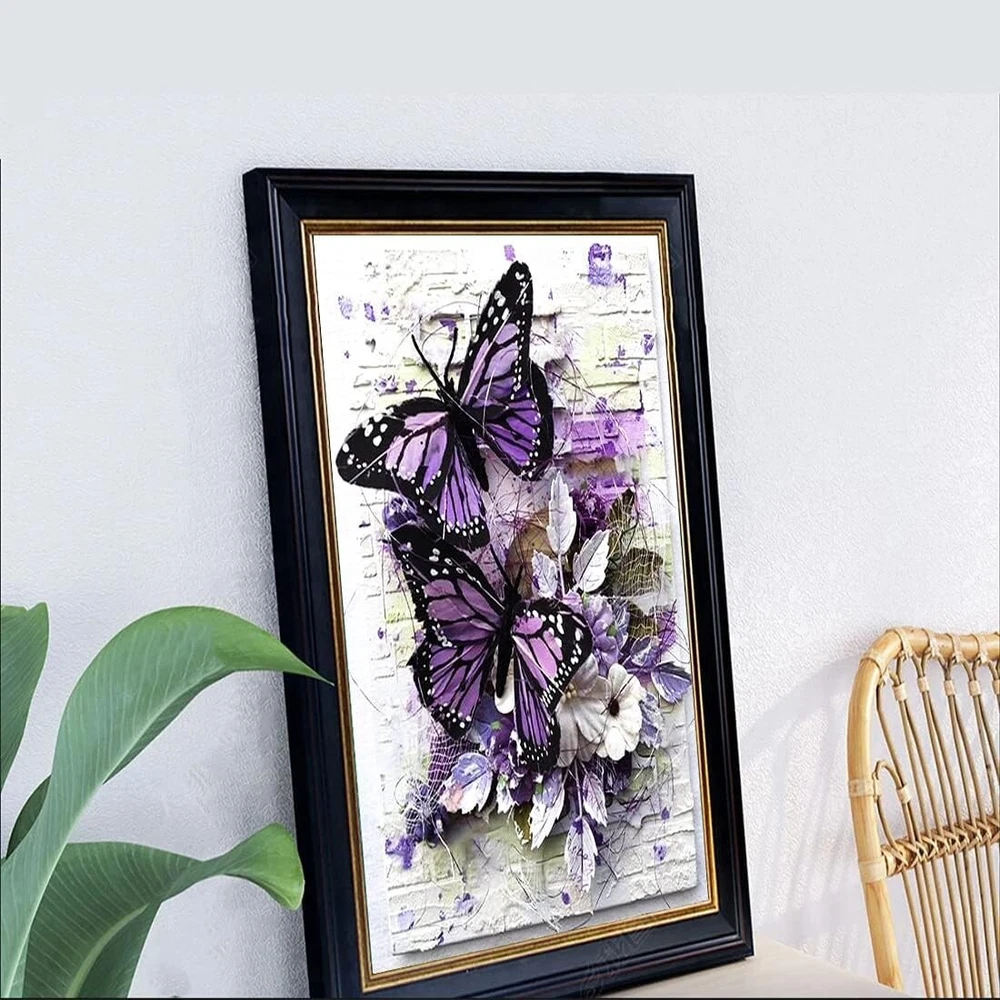 Adult 5D Round Full Drill Butterfly Diamond Art Canvas - Stress Relief Fun