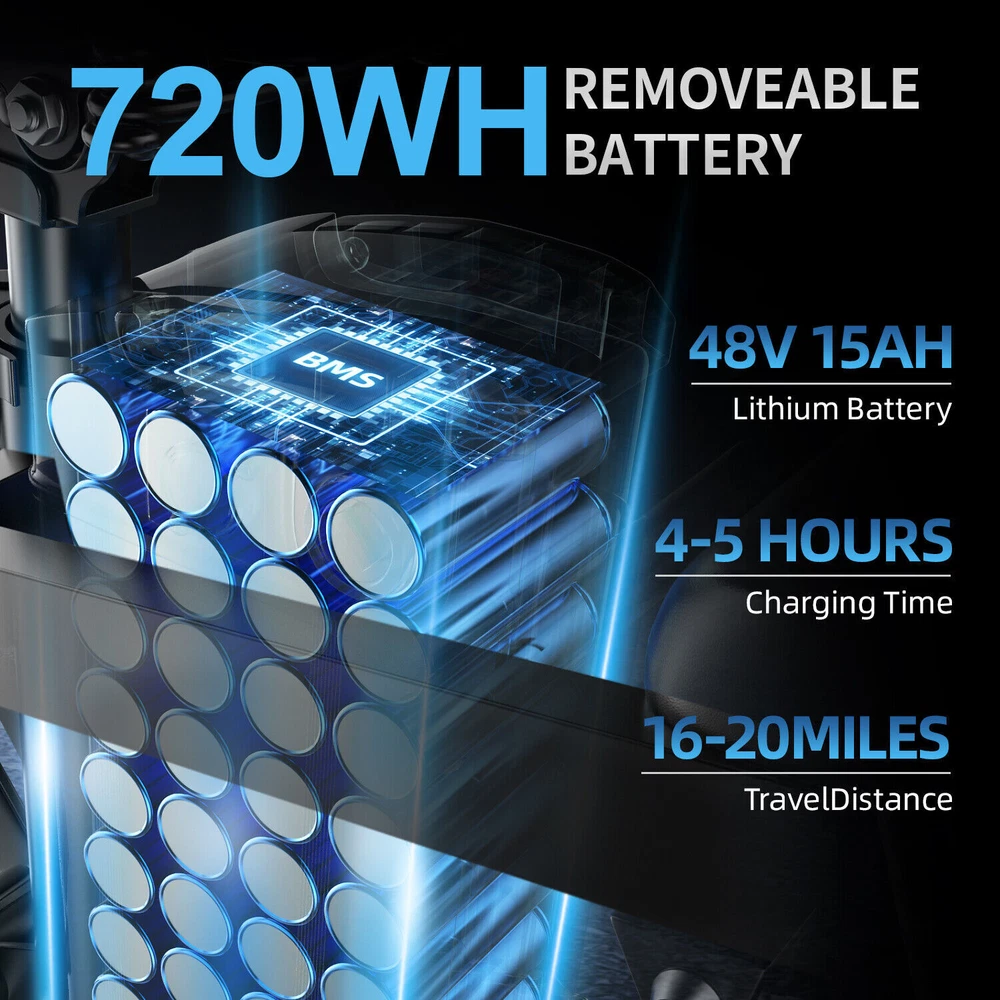Adult Electric Bike Peak 1000W Folding E-bike 28MPH 48V 18.2Ah Bicycle Commuter