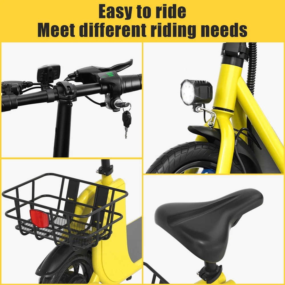 Adult Foldable Electric Bike Electric Scooter w/Seat Ebike 450W UL2849 Certified Feature Powerful Motor & Long Range: The adult electric bike comes with a 450W powerful brushless motor and large 40 cells 8.0Ah Lithium-ion battery, enables a 12.5-mile range, and a max speed of 15.5 mph. Portable & Lightweight: The foldable electric bike only weighs 42 lbs and can comfortably accommodate riders up to 265 lbs. This adult electric scooter can be easily folded and stored in the car trunk, which makes it perfect for commuters and students. Safe & Durable: With double braking systems, the front and back disc brake of the e-bike give you double safety. The 12" tires built for multi-terrain of daily use or outdoor activities. Detail Oriented Design: The E Scooter come with 13 x 11 inch rear carry basket and scooter deck, front LED light and rear reflectors for safety. Easy Assemble Required: The only assembly required is the seat and basket attachment. The handle bars are folded and just need to be erected. All tools are provided in the box. Package Listing 1 X E Scooter 1 X Charger 1 X User Manual 1 X Tool Kit After you receive the adults scooter,before first Riding,please do the follows: 1.Inflate the Tires before Riding. 2.Complete Charging(Light RED:Charging, Light Green: Charging Compelte). UL 2849 certified The E-bike have passed UL 2849 safety standard detec tionhttps://productiq.ulprospector.com/en/profile/ Shipping Payment Return and Refund Policy Feedback Help - Customer Support - Contac Shipping FREE SAME BUSINESS DAY MONDAY- FRIDAY SHIPPING FROM USA. No shipping on Weekends or US Public Holidays. No responsibility for any custom duty We will ship your order to your PayPal Verified address provided. Please verify your address and make sure that it is your current address before making your payment. Any address change requests after your payment CANNOT be guaranteed. Shipping information will be updated when available. All of our products can be shipped internationally. To confirm the shipping rates to your country please refer to eBay's Shipping Tab above. Any brokerage, customs, and duty fees associated with international shipments are the customer's responsibility and are not included in our shipping fee. A phone number is required for the customs documents. Failure to provide one will result in delays. We do not include an invoice or any advertising materials with our shipments. Payment Immediate payment is required. Shipping will be arranged within 1 business day once payment is cleared. To uphold a shipping speed, your order will be processed almost immediately. If you change your mind after your payment is confirmed, we will do our best to cancel the order, however, we CANNOT guarantee the cancellation. Return and Refund Policy 1. We stand behind our items and offer 30 days warranty . All items are in new and working condition unless specified otherwise elsewhere in the description. 2. All Returns - defective or otherwise - MUST BE PREAUTHORIZED to guarantee refund or exchange. Please contact us to get an authorization and return address. 3. Buyer agrees to pay for the cost of re-shipment for undeliverable or wrong addresses. 4. Buyer is responsible for Return Postage as well as a 20% restocking fee if return/replacement is not a result of our mistake such as wrong item. 5. Replacement or Refund will be made upon receipt of the returned item. Please include tracking number so we can process ASAP. If you do not wish to wait for a replacement, please repurchase the item. 6. ALL REFUNDS will be processed via PayPal. Please double check via PayPal history and transaction for confirmation. PayPal will send it back to whatever you used to pay within 3-5 days. Feedback We strive to provide the best products and services. Your positive feedback 5 stars DSR help us do better. If anything about your transaction did not meet expectations, please CONTACT US and give us the opportunity to make things right. We are always here to help. Help - Customer Support - Contac Please do not hesitate to CONTACT US . You can message 24/7 on eBay for all questions and inquiries. We will get back to you within 1-2 business days at the latest.