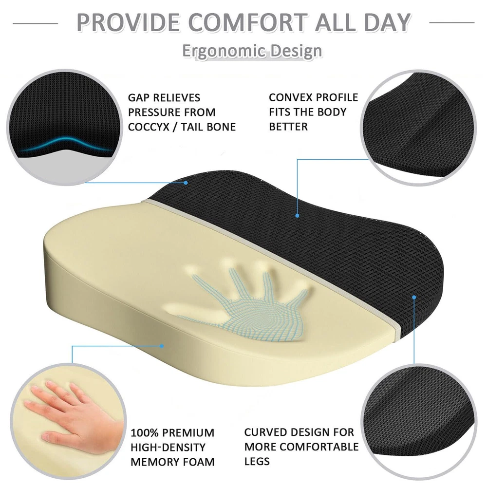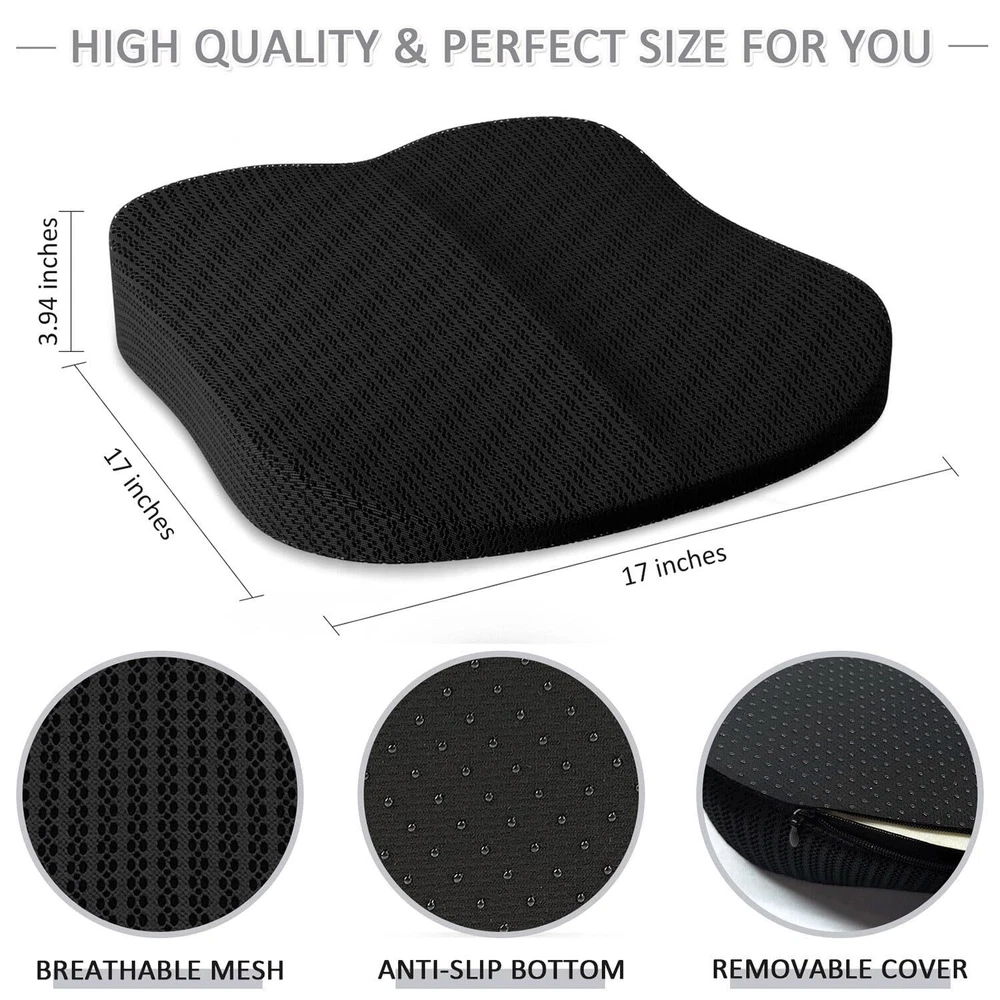 Road Trip Essentials for Adults: Transform your driving experience with our adult seat for car! Elevate your seated position. Enhances your visibility and provide added comfort. Picture yourself effortlessly gliding through traffic, enjoying newfound confidence and safety as you sit tall behind the wheel. Provide Comfort All Day: Experience unparalleled comfort with our high-density memory foam seat cushion, designed to provide optimal support and alleviate pressure on your tailbone and lower back, ensuring long-lasting comfort during extended periods of sitting. Ideal for those suffering from sciatica, tailbone injuries, or other lower back issues. Premium Memory Foam & Breathable Mesh: Our car seat cushion is constructed with supportive slow-rebound high-quality memory foam that retains its shape even after prolonged use. The cushion's cover is crafted from breathable, hypoallergenic mesh fabric, ensuring superior air circulation and preventing heat buildup. Suitable for use all year round. Ergonomic Design & Practical Gift Idea: Our chair cushions feature an ergonomic contour that promotes healthy posture, evenly distributing weight and enhancing spine alignment. Ideal for office chairs, car seats, wheelchairs, gaming chairs, and home use. An excellent gift for anyone who spends long hours sitting. Show you care by providing the gift of comfort and support. Removable Cover & Non-Slip Bottom: The office chair cushion comes with a removable cover that is easy to clean. Simply unzip and toss it in the washing machine to keep your cushion fresh and hygienic. Equipped with a non-slip rubber bottom to ensure your cushion stays securely in place on any surface, providing stability and preventing unwanted movement during use. Package & : The driver seat cushion is Shipped Compressed. Remove the package and shake it. It will take 24-48 hours to fully expand. The customer's product experience has always been our priority, if there is any problem about this coccyx cushion, please feel free to us.