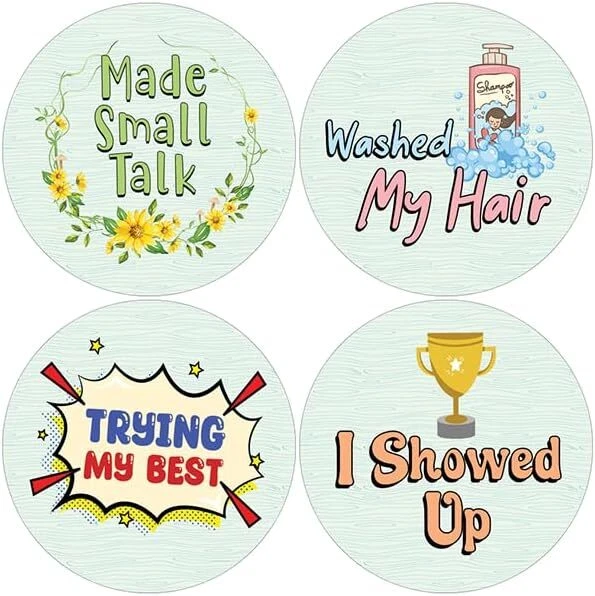 16 UNIQUE DESIGNS INSPIRING STICKERS FOR YOUR DIY PERSONALIZED DECORATIONS - Creanoso Adulting Affirmations Stickers (10-Sheets). These colorful and uniquely inspiring round shaped stickers are the best tool for DIY decoration and personalization of your belongings. GREAT STOCKING STUFFERS , TEACHING SUPPLEMENTARY MATERIALS, AND GIVEAWAY - Great stocking stuffers gifts for Boys, Girls, Teens, Kids. A perfect design to give during classroom school activities, home schooling,birthdays, anniversaries, family day, and any other special occasions. MADE WITH DURABLE AND WATERPROOF MATERIALS - There is a lamination or coating to make the stickers high water resistant, and WILL NOT not fade from the water. The stickers can stick it anywhere you like, and it sticks there and lasts a long time. A COLORFUL AND DECOR STICKER DECAL - Each sheet with 16 individual round stickers. There are 10 sheets , with a total of 160 pcs of stickers. STICKER SIZE: 1.5 INCHES IN DIAMETER Adulting Affirmations Stickers (10 Sets X 16 Designs) COLORFUL AND COLLECTION OF TEXT STICKERS • Well designed. • Very encouraging. • Self-adhesive. Adulting Affirmations Stickers (10 Sets X 16 Designs) are super fun to collect; you can't have just one! That's why you will find a selection of stickers right here. Each package comes with different stickers in a variety of designs. Stick them here, stick them there, stick them everywhere! Everyone will love these self-adhesive stickers. These colorful stickers are perfect for any adults and these come with very inspiring messages and bright pictures. A fun, inexpensive way to add a decorative, notes, and stationery. Delight yourself with uplifting messages designs that are very encouraging. Adulting Affirmations Stickers (10 Sets X 16 Designs) perfect for giveaways, behavior incentives, prizes! These stickers are acid-free, nontoxic, and safe for use on photos. This product comes with a 60 days money back guarantee. You can return them to us for a full refund.