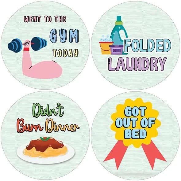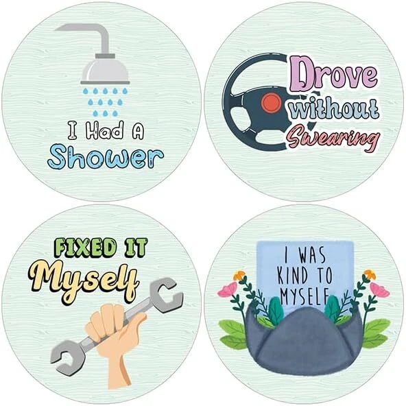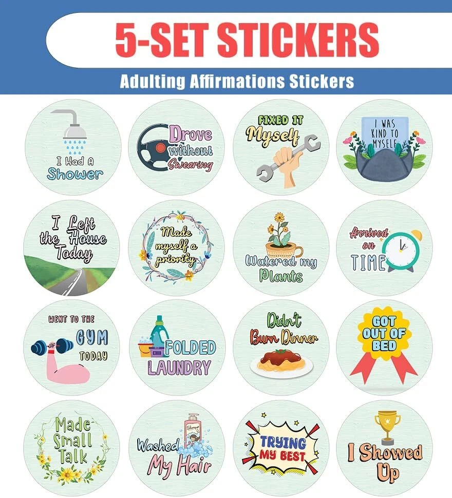 16 UNIQUE DESIGNS INSPIRING STICKERS FOR YOUR DIY PERSONALIZED DECORATIONS - Creanoso Adulting Affirmation Stickers (5-Sheets). These colorful and uniquely inspiring round shaped stickers are the best tool for DIY decoration and personalization of your belongings. GREAT STOCKING STUFFERS , TEACHING SUPPLEMENTARY MATERIALS, AND GIVEAWAY - Great stocking stuffers gifts for Boys, Girls, Teens, Kids. A perfect design to give during classroom school activities, home schooling,birthdays, anniversaries, family day, and any other special occasions. MADE WITH DURABLE AND WATERPROOF MATERIALS - There is a lamination or coating to make the stickers high water resistant, and WILL NOT fade from the water. The stickers can stick it anywhere you like, and it sticks there and lasts a long time. A COLORFUL AND DECOR STICKER DECAL - Each sheet with 16 individual round stickers. There are 5 sheets , with a total of 80 pcs of stickers. STICKER SIZE: 1.5 INCHES IN DIAMETER Adulting Affirmations Stickers (5 Sets X 16 Designs) COLORFUL AND COLLECTION OF TEXT STICKERS • Well designed. • Very encouraging. • Self-adhesive. Adulting Affirmations Stickers (5 Sets X 16 Designs) are super fun to collect; you can't have just one! That's why you will find a selection of stickers right here. Each package comes with different stickers in a variety of designs. Stick them here, stick them there, stick them everywhere! Everyone will love these self-adhesive stickers. These colorful stickers are perfect for any adults and these come with very inspiring messages and bright pictures. A fun, inexpensive way to add a decorative, notes, and stationery. Delight yourself with uplifting messages designs that are very encouraging. Adulting Affirmations Stickers (5 Sets X 16 Designs) perfect for giveaways, behavior incentives, prizes! These stickers are acid-free, nontoxic, and safe for use on photos. This product comes with a 60 days money back guarantee. You can return them to us for a full refund.