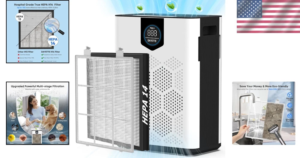 Advanced Air Purifier with Washable Pre-Filters & Real-Time Air Quality Monitor