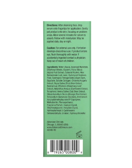 Brand: Advanced Clinicals Volume: 1.75 Type: Wrinkle Reducer Active Ingredients: Glycolic Acid MPN: AC048 Main Purpose: Early Signs of Aging, Wrinkles, Age-Defying, Firming gtin13: 0819265008009 Ingredients: Glycerin Features: Instant Effects, Animal Cruelty-Free, Contains Collagen, Paraben-Free, Contains Hyaluronic Acid Body Area: Neck, Face, Body UPC: 0819265008009 Size: Regular Formulation: Serum