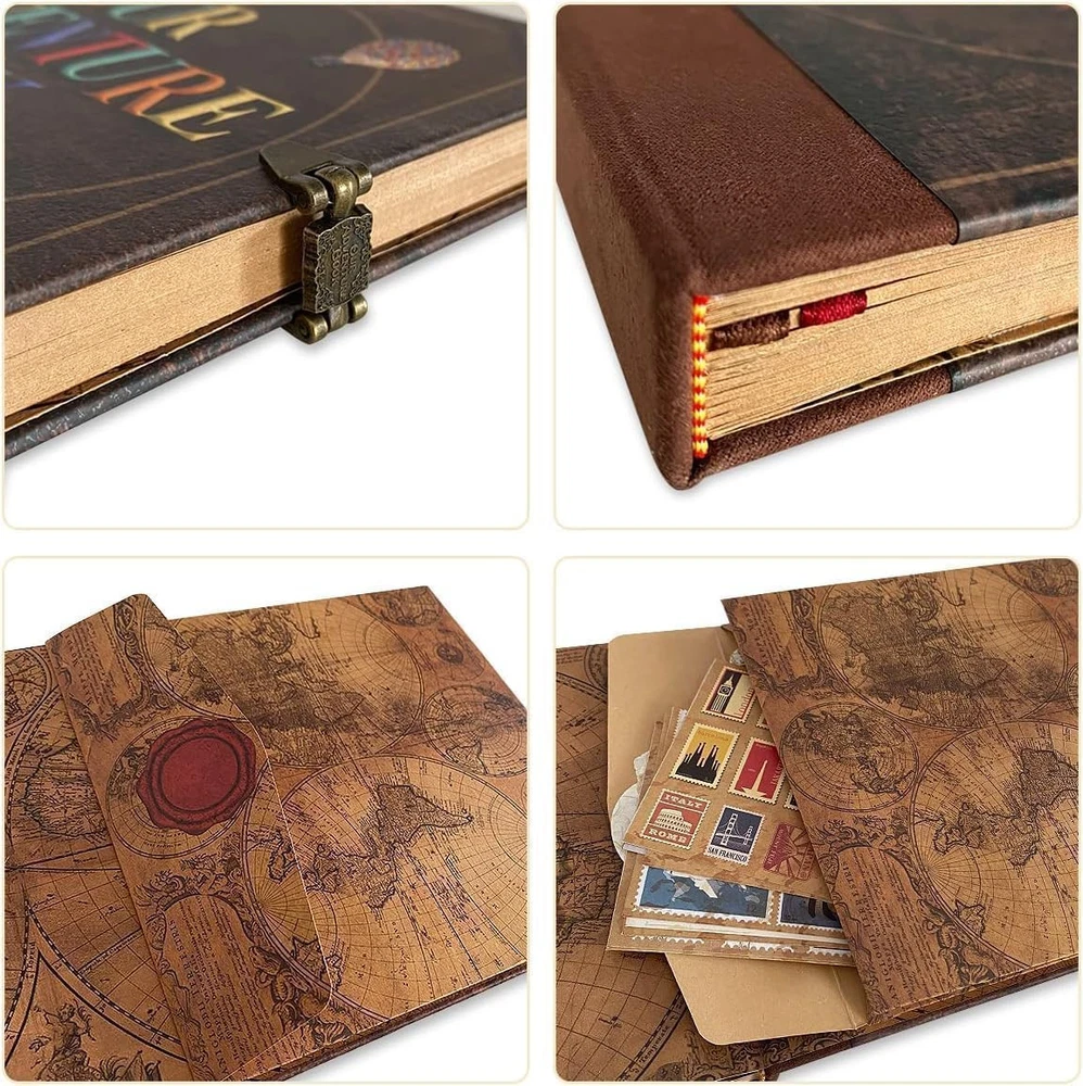 ❤️【Generous Size and Capacity】The Adventure book features a 9.02*7.72-inch dimension with 74 sheets (148 pages) capable of holding over 300 photos. It incorporates a sturdy craft paper bag at the back, perfect for storing tickets, stamps, and other travel mementos. Additionally, this adventure book doubles as a notebook, featuring smooth, writable pages ideal for jotting down notes, thoughts, and memories with precision. It's perfectly suited for documenting your journeys within its pages. 📷【Camping-Themed Scrapbook Album】 Customizable for a collection of retro-style souvenirs, it arrives with an exquisite gift box, several bookmark cards, and multiple stickers, facilitating a personalized DIY experience. 💯【Up-Inspired Design】 Boasting a three-dimensional font cover and a classic retro hardcover made from thick, non-fading craft paper, each scrapbook contains various retro page styles for an artistic and nostalgic touch. 💎【Travel-Ready Scrapbook】Perfectly sized for on-the-go use, it functions as a DIY adventure book, travel journal, and picture diary, easily portable in a backpack. It also presents an adventure challenge for couples through a scratch-off feature. 🎁【Artistic Gift Selection】The meticulously detailed artwork, packaging, and customizable elements make it an excellent gift choice for various occasions, including birthdays, graduation, back-to-school, Christmas, Thanksgiving, Mother's Day, Father's Day, and Valentine's Day. It's an ideal gift for best friends, anniversaries, and couples seeking a meaningful memory keepsake for Women's Day.