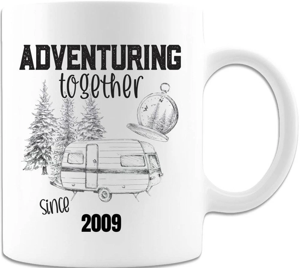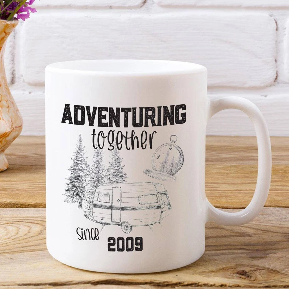 Adventuring Together Since Custom Personalize Anniversary Year Product Details.. This high quality 11oz. ceramic white mug has a premium hard coat that provides crisp and vibrant color reproduction sure to last for years. Perfect for all hot & cold beverages. The highest quality printing possible is used. It will never fade no matter how many times you wash it. Material: 100% Ceramic. Print both sides. Dishwasher and Microwave Safe. High Gloss + Premium White Finish. Printed in the U.S.A. Personalized & Custom. We support personalized and custom mug to add custom, when placing an order, you can add notes to the "order note" in shipping address section. Also you can contact us directly via message. Shipping Info. Ready to ship in 1 to 2 business days, All products are made-to-order and proudly printed in the United States. Shipped by USPS and DHL, You will receive your order in 5-7 days. Replace & Refund. All products are defective during shipping broken, chipped will be replaced free of charge. You are not satisfied with the product, we will refund 100% money to you. If any other issues arise, please do not hesitate to message, we would be more than happy to assist you.