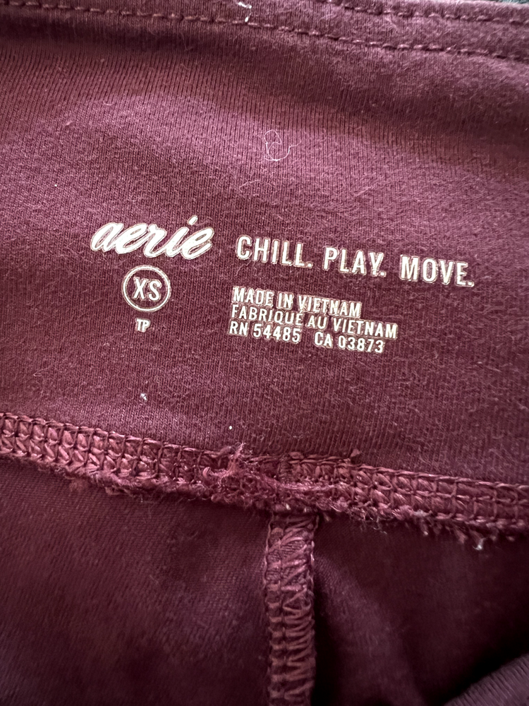 American Eagle Aerie Chill Play Move Leggings Size XS Burgundy EUC. Condition is Pre-owned - Excellent. Shipped with USPS Ground Advantage.