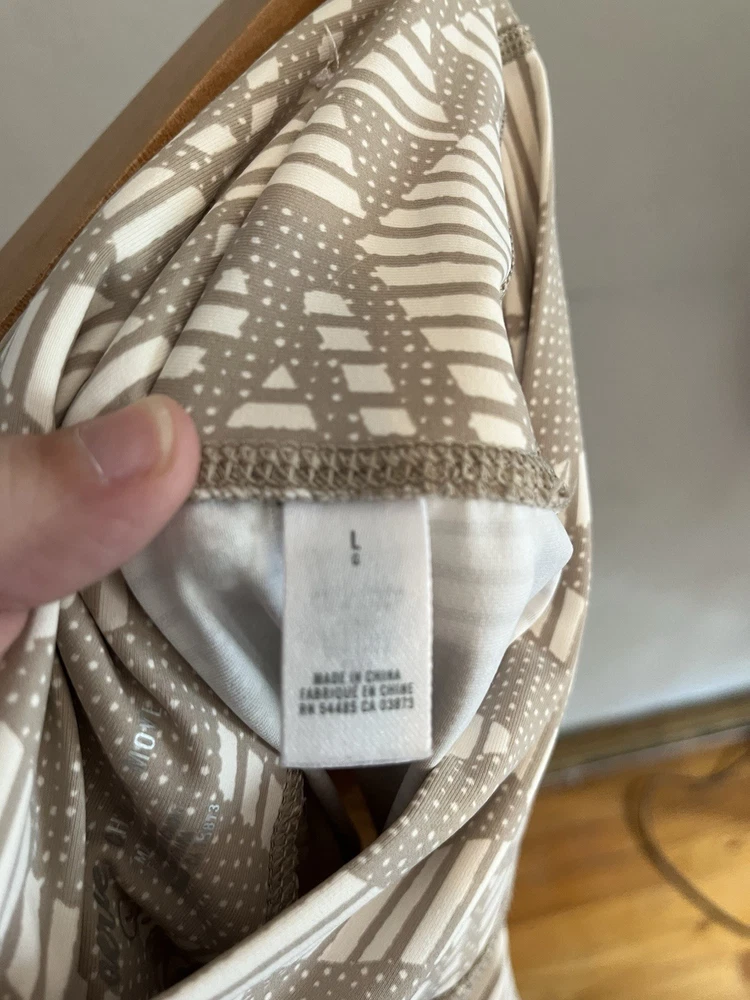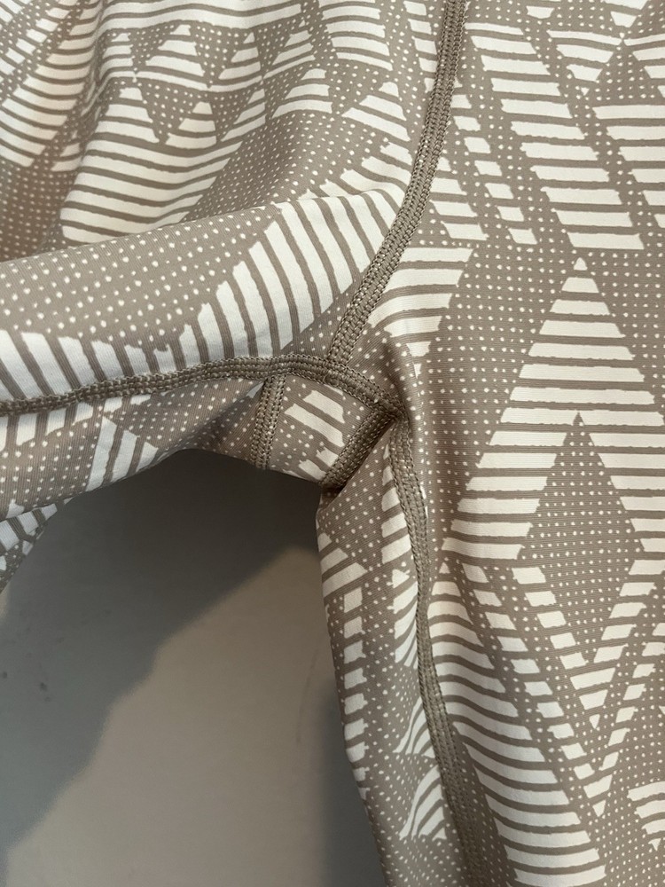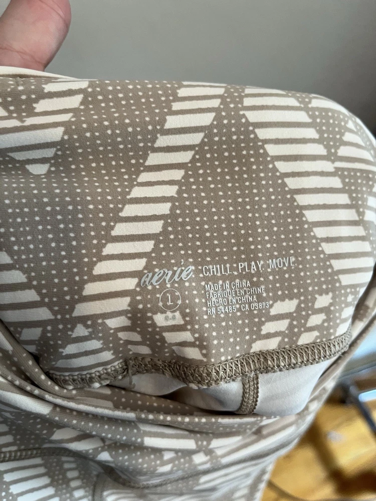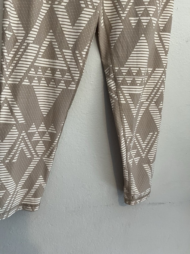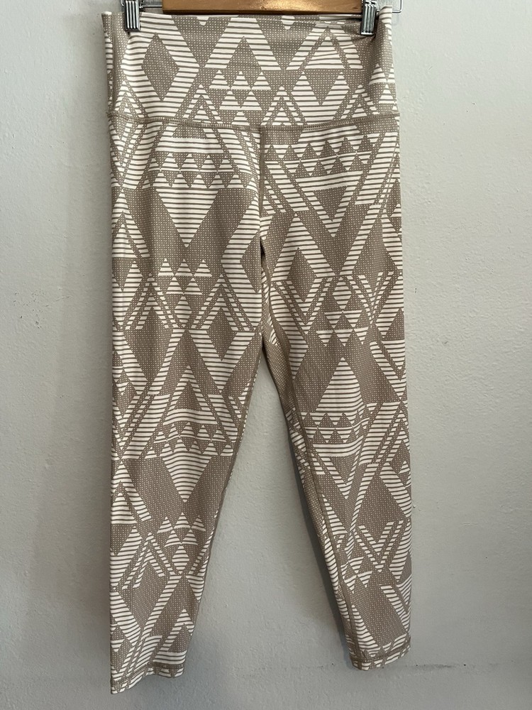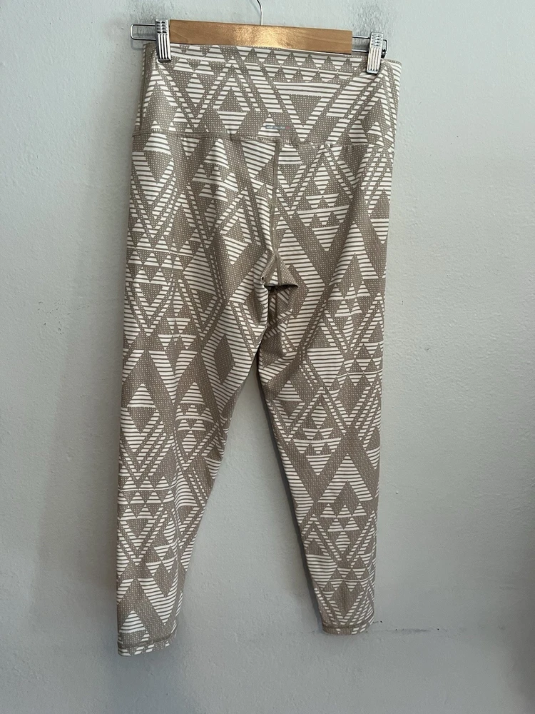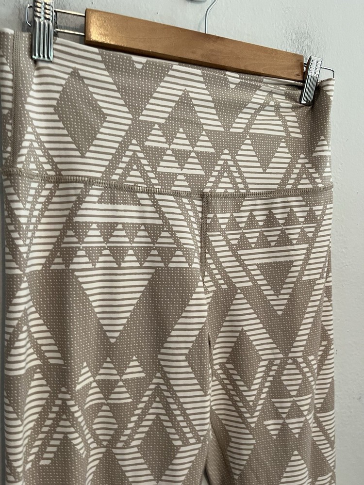 The Aerie Chill Play Move High Rise Tan & Cream Diamond Tribal Boho 7/8 Leggings in size Large offer a stylish and comfortable option for women looking for a unique pair of leggings. With a bohemian theme and diamond pattern, these leggings are perfect for adding a trendy touch to any outfit. The multicolor design and ankle length make them versatile for both casual and athletic looks. Measurements Waist: 14-17 in Rise: 11 in Inseam: 27 in Length: 33 in Condition: Pre owned and excellent - no visible flaws. 251607 W013