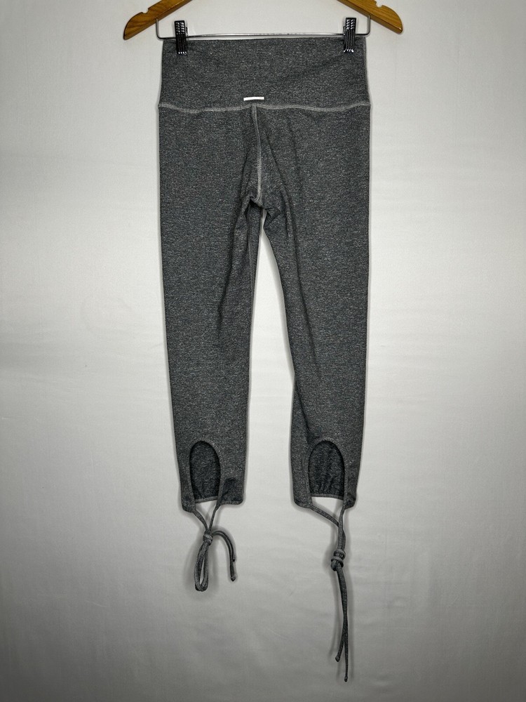 Aerie Heathered Gray Cropped Leggings Tie Detail Hem Women's Size Medium Measurements Are Pictured