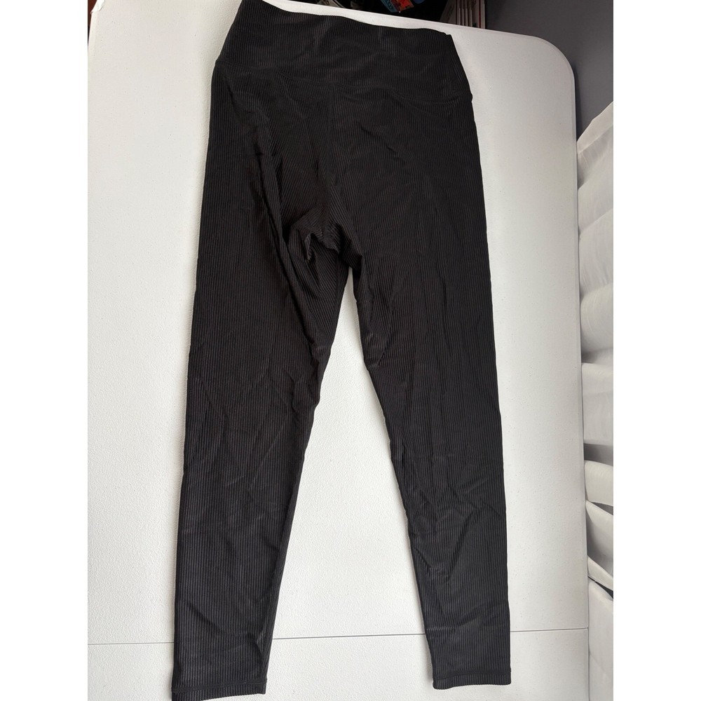 Stylish and comfortable ribbed leggings, perfect for workouts or casual wear. These leggings feature a flattering high-waisted design and a unique ribbed texture that adds a touch of sophistication. The versatile design makes them suitable for various activities, from yoga sessions to running errands. These leggings are a great choice for creating a stylish and comfortable athleisure look, ideal for pairing with a sports bra for a workout or dressing up with a tunic for a casual outing. Color: Black Department: Women Style: Ankle Type: Leggings Material: Spandex, Polyester Blend, Polyamide Blend Features: High Waist, Ribbed, Comfort, Stretch, Athleisure Rise: High (Greater than 10.5 in) Pattern: Solid Character: Comfort, Style Keywords: Aerie, OFFLINE, Leggings, Ribbed, High Waisted, Athleisure, Workout, Yoga, Comfortable, Black Leggings, XL Leggings, Activewear, Casual Wear, Womens Leggings