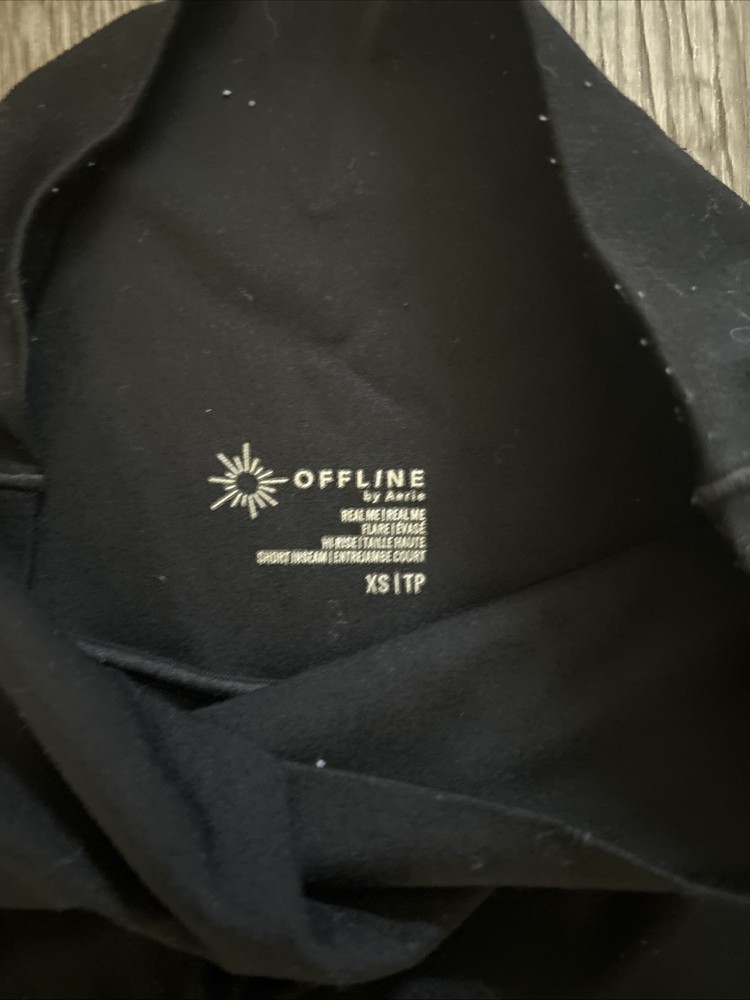 The Aerie Offline Black Real Me High Rise Crossover Flared Leggings in Women's Size XS are perfect for travel, activewear, and casual occasions. Made from a blend of polyester, nylon, and spandex, these leggings offer lightweight comfort and stretch. The high-rise design and flared style provide a flattering fit, while the black color and solid pattern make them versatile for various outfits. Machine washable for easy care, these leggings are a stylish choice for those who love athleisure and sports-inspired apparel. Made in Vietnam, they are designed for activities like gym training, walking, and yoga.