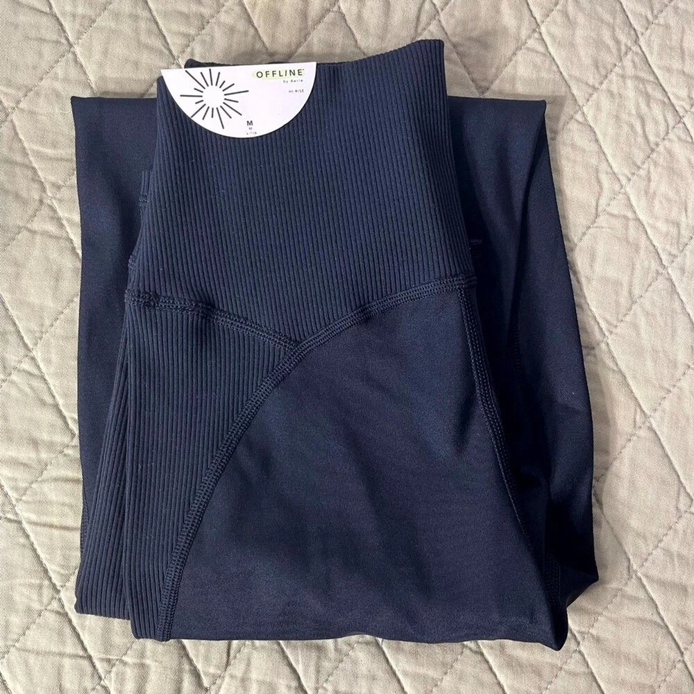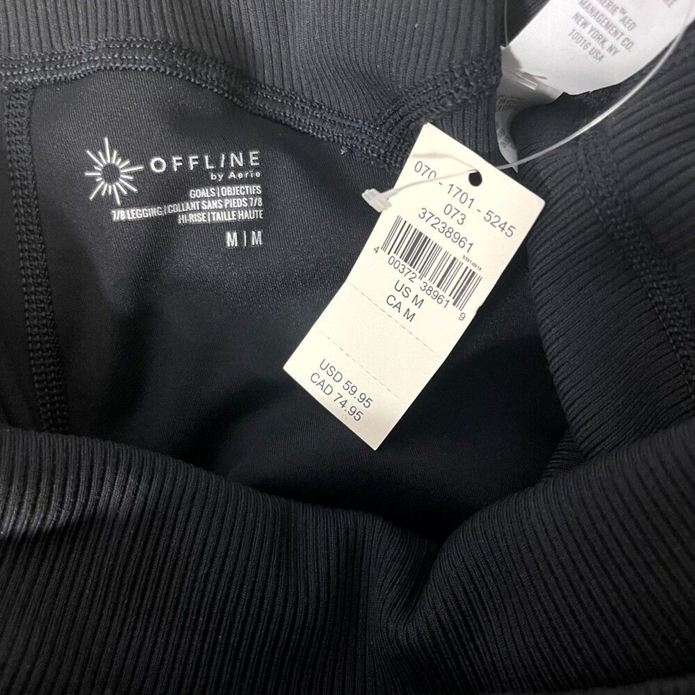 Brand new with tags! Offline by aerie Goals Black High Wasted Ribbed Leggings 7/8 Size Medium The Details THE FABRIC: Our Goals fabric. ZERO camel toe with no center front seam & the most booty support. THE DEETS: Raw cut hem and ribbed deets! THE MOVES: For flexing those muscles, hitting the gym (because they dry fast AND support your booty). You liked Move Feel Cool leggings, you’ll love Goals. Materials & Care 72% Nylon, 28% Elastane Machine wash THE FIT: High waisted. 7/8 Length. Hits just above the ankle | Inseam: 26 1/2" Retails for $60! Tags: NWT Offline by Aerie Goals true black high waisted ribbed leggings 7/8 size M, stylish leggings, women's fashion, Aerie clothing, comfortable leggings, casual wear, trendy activewear, high waisted leggings, ribbed texture, women's bottoms, versatile leggings, everyday wear, flattering fit, chic activewear, workout leggings, women's athletic wear, soft leggings, fashionable leggings, durable leggings, fitness wear