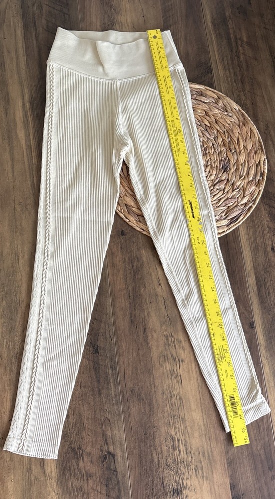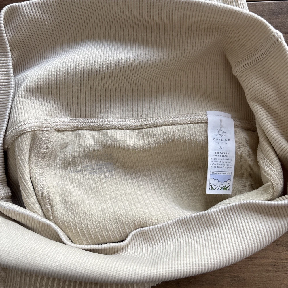 Elevate your workout wardrobe with these Aerie Offline leggings in a chic ivory cream color. Designed with compression technology, these leggings provide a comfortable fit while targets areas of the body that tend to be problem spots. The braided side detail adds a touch of style to these versatile leggings, which can be worn with a variety of tops and shoes for a complete workout outfit. Available in size small, these leggings are perfect for women who want to look and feel great while they exercise. 98% nylon, 2% elastane Inventory 206