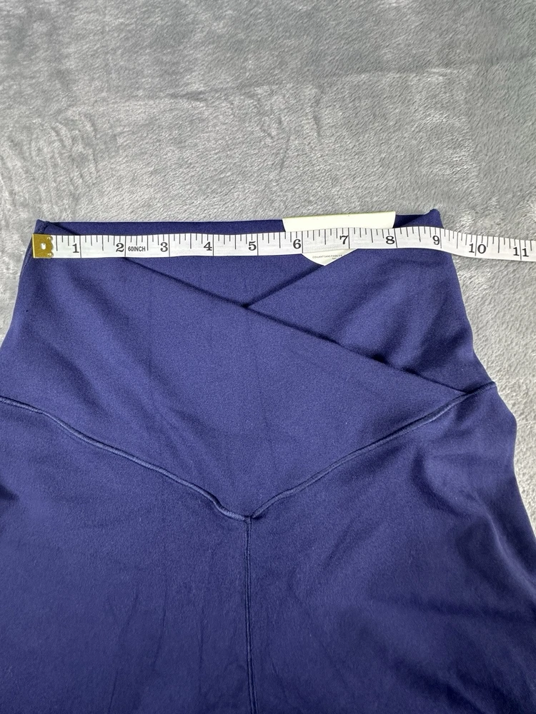 These new with tags Navy Blue leggings are in excellent condition. They are the 7/8 legging hi-rise and are soft and have stretch for awesome comfort. The front waist has a pretty crossover design in the waistband. They are labeled as a Size Small and have a 24.5” inseam. Approximate Measurements: Inseam - 24.5” Waist - 18” Rise - 8.5” Bottom ankle hem across - 4” ***Measurements can be seen in photos.