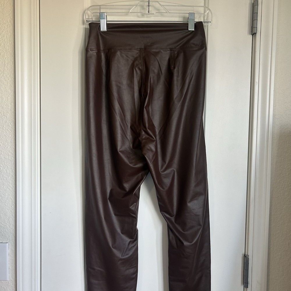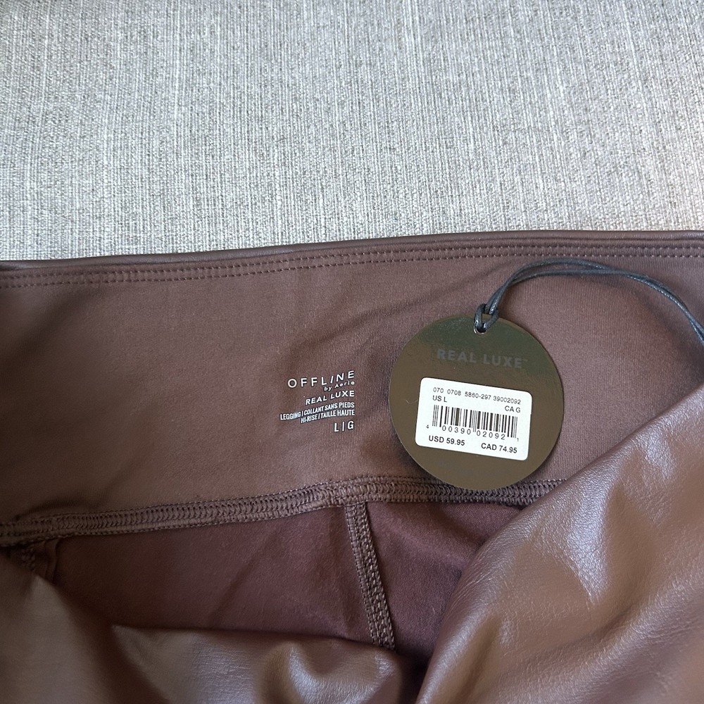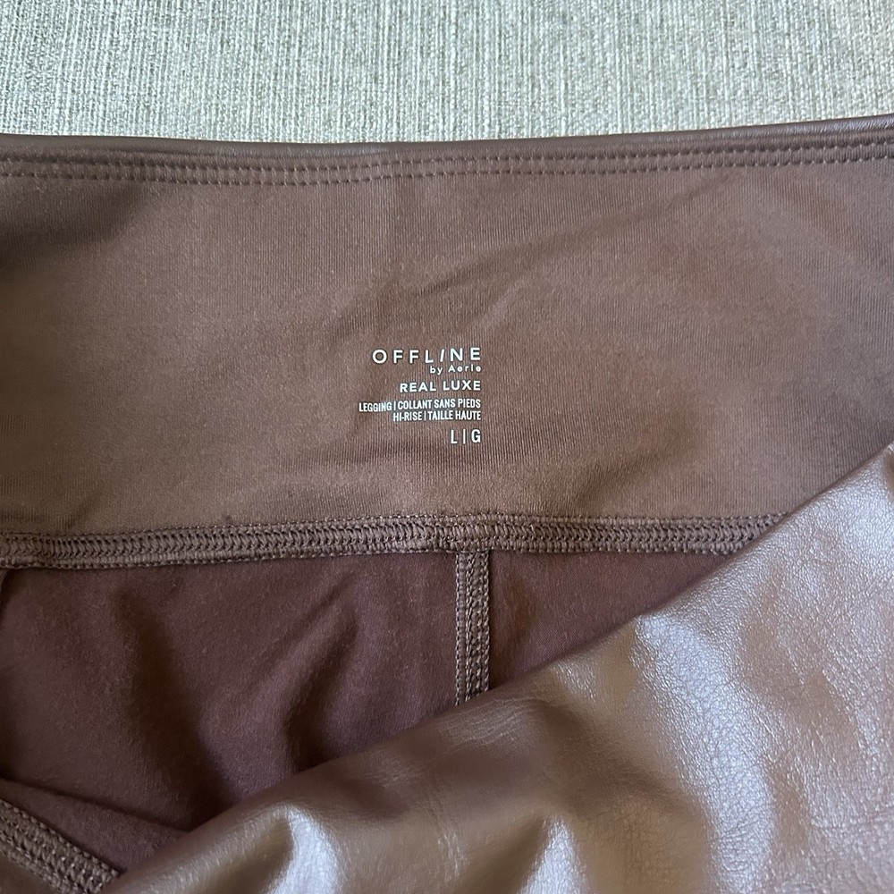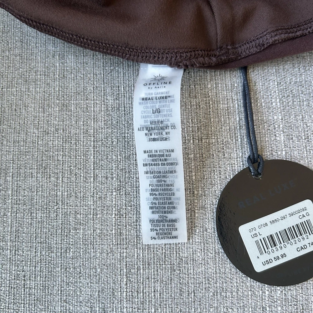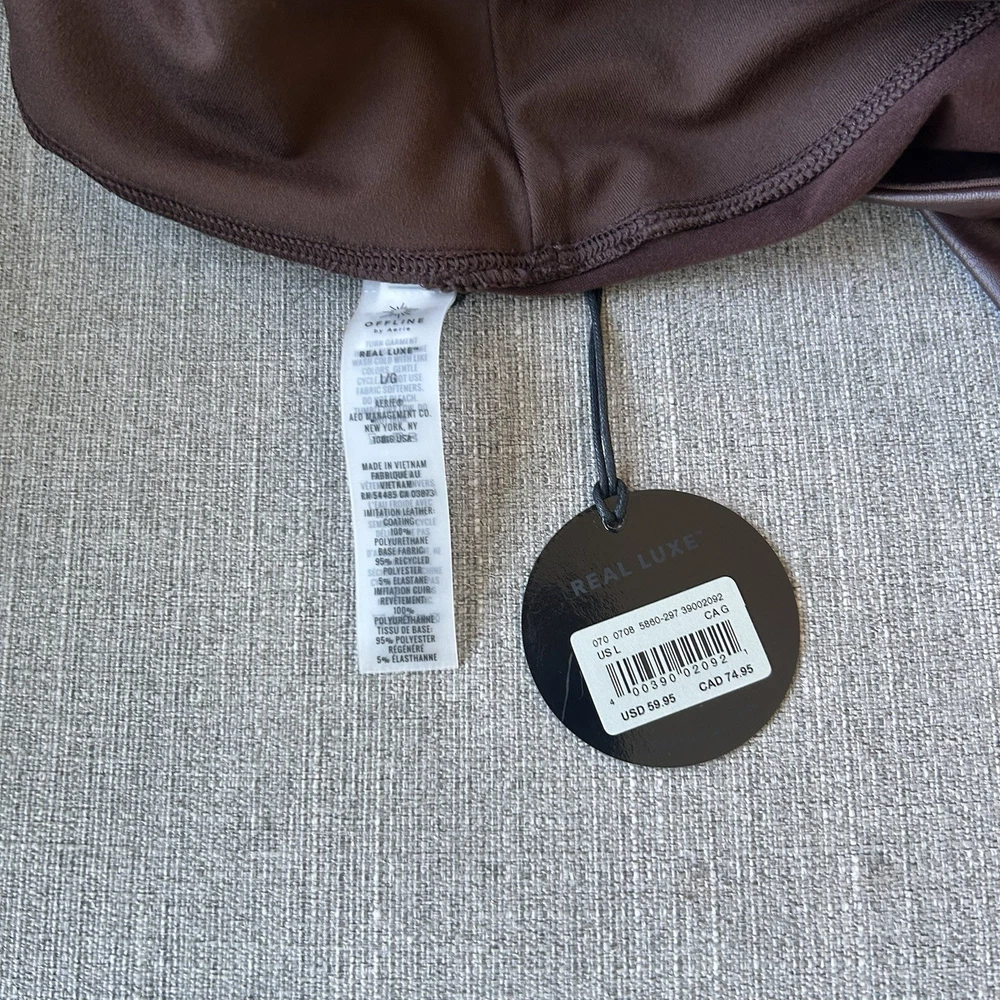 These Offline By Aerie Women’s Real Luxe Imitation Leather Leggings in size L are a stylish and versatile addition to any woman's wardrobe. Made from faux leather with a high rise waist, they offer both comfort and stretch for a flattering fit. The solid brown color and classic, modern style make them suitable for casual occasions year-round. Machine washable for easy care, these leggings from Aerie are perfect for those looking for a bohemian yet chic look.