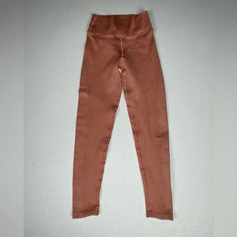 Offline By Aerie High Waisted Ribbed Leggings Peach Size XS New without tags. Smooth with no limits to their amazingness. (Just like you.) THE FABRIC: Our stretchy-yet-supportive seamless fabric. Feels smooth, keeps its shape & moves with you. THE DEETS: Updated construction for our best fit yet. This waistband WILL. NOT. SLIDE. DOWN. MORE DEETS: This pair has a wash & ribbed deets. THE MOVES: You decide. Coffee? Check. Dog walking? Check. Sweating? Check.