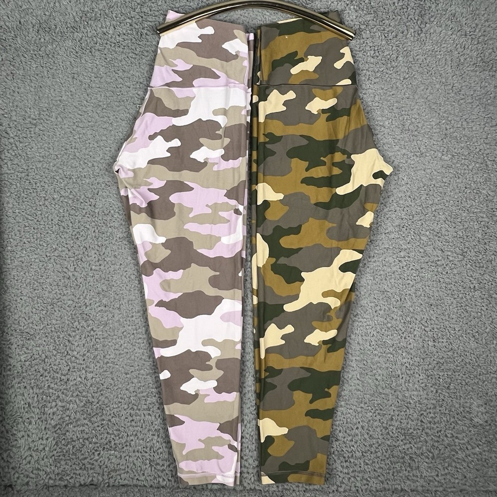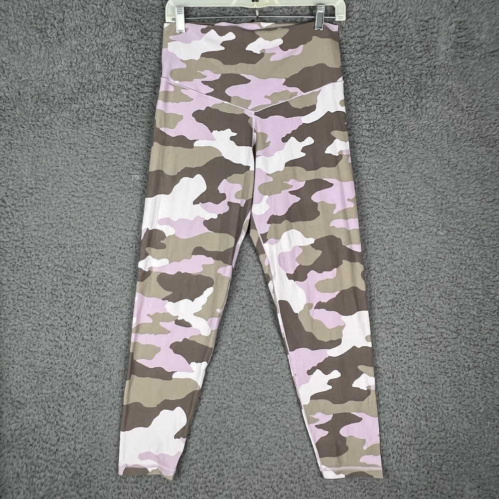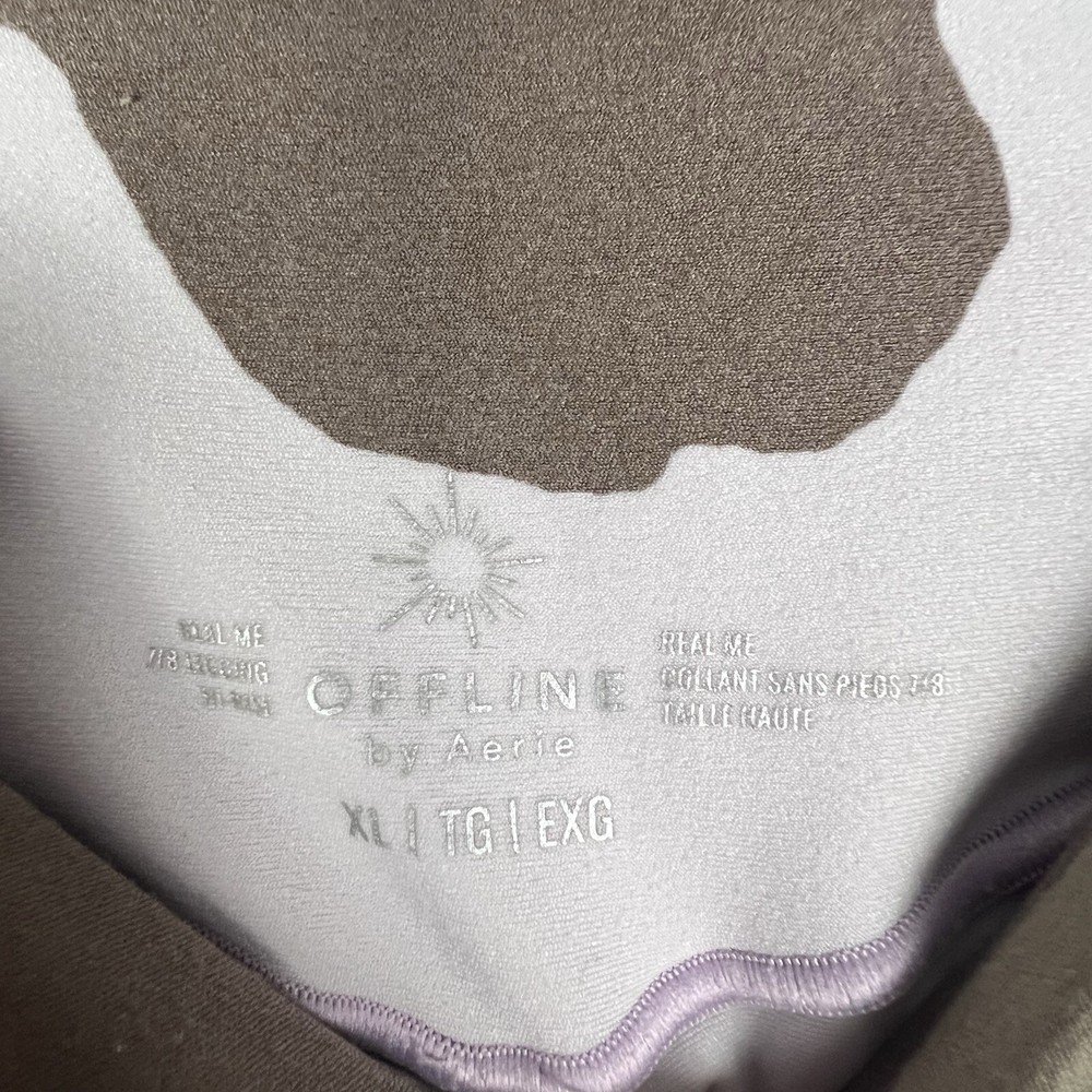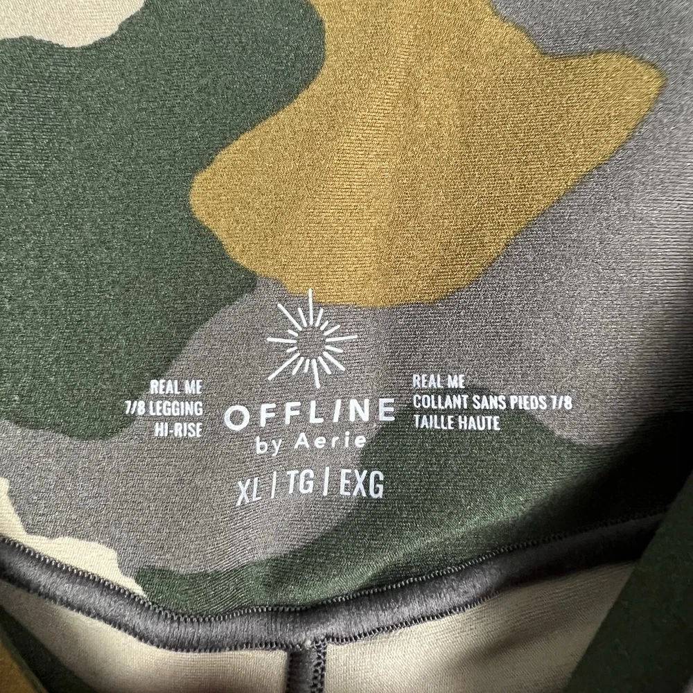 NOTE: there is some pilling, but still in excellent condition. Elevate your workout wardrobe with these Offline by Aerie Real Me 7/8 Leggings in high-rise purple camo and green camo. Designed for women who love a blend of style and comfort, these leggings come in size XL and are perfect for gym & training, yoga, cycling, or CrossFit. The blended fabric of polyester, spandex, and nylon makes them lightweight, stretchy, and comfortable, while the hi-rise waistband provides a snug fit that flattens the stomach. The leggings feature a colorful and bold camouflage pattern that adds a touch of fun to your activewear collection. They are machine washable and easy to care for. With the right amount of stretch and comfort, these leggings are perfect for all seasons, whether it's winter, summer, fall, or spring. Add these leggings to your collection and get ready to hit the gym in style!