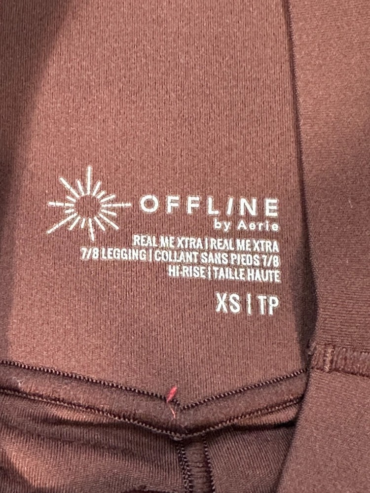 Super soft and stretchy, these Offline by Aerie Real Me Xtra leggings are perfect for workouts or lounging. These 7/8 length high-rise leggings are made with Aerie’s signature buttery-soft fabric that hugs your shape while offering comfort and mobility. Details: • Brand: Offline by Aerie • Style: Real Me Xtra 7/8 Legging • Size: XS • Color: Maroon / Burgundy • Fit: High Rise • Condition: Gently used, excellent condition Measurements (laid flat): • Waist: ~11.5 inches • Inseam: ~24.5 inches 💛 Thanks for supporting our small family business!