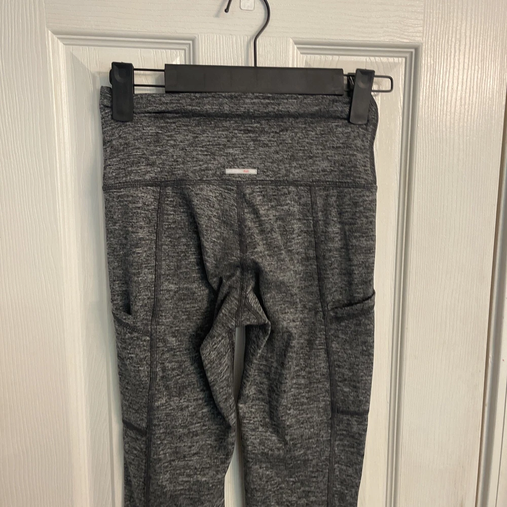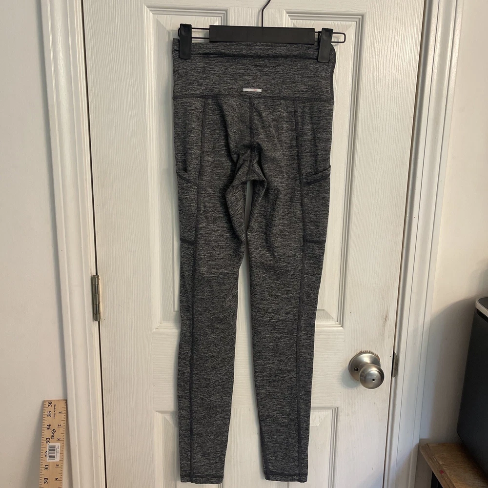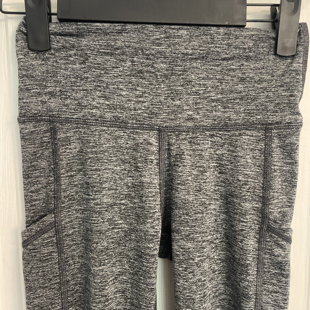 The Aerie Women’s Chill Play Move Gray/ White Stretch Leggings with Pockets in size XS are versatile activewear leggings perfect for various occasions such as workouts and casual wear. The speckled pattern in gray and white with a mid-rise and 25.5-inch inseam offers a trendy athleisure style. Featuring pockets for added convenience, these leggings are machine washable and suitable for all seasons, making them a must-have for any woman's wardrobe.