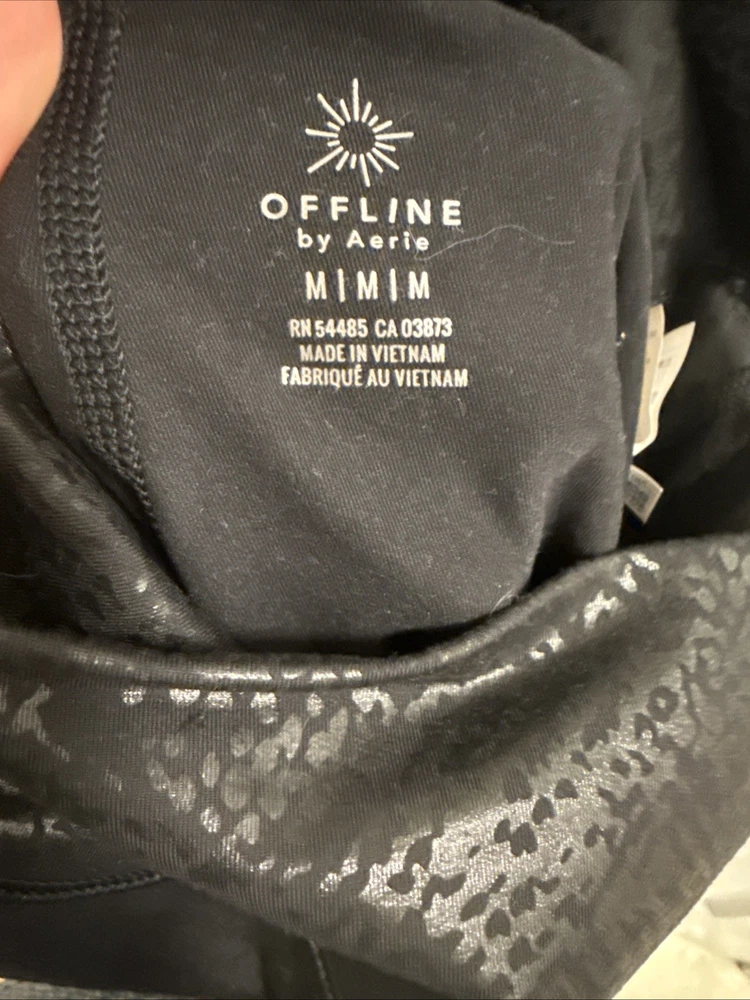 The Offline by Aerie Women's Leggings in size Medium, are a stylish and comfortable addition to any woman's wardrobe. These geometric black leggings feature a skinny ankle length and are made from a blended fabric for added comfort and stretch. With an elastic waist and easy care instructions, these leggings are perfect for activities like walking, yoga, and pilates. The athleisure theme of these leggings makes them versatile for all seasons, from winter to summer and fall to spring.